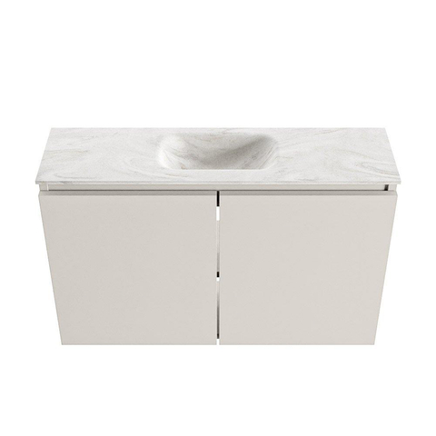 MONDIAZ TURE-DLUX Meuble de toilette 80cm Linen. EDEN vasque Ostra position milieu. Sans trou de robinet.