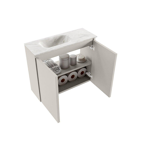 MONDIAZ TURE-DLUX Meuble WC 60cm Linen. EDEN lavabo Ostra position gauche. Avec 1 trou de robinet.
