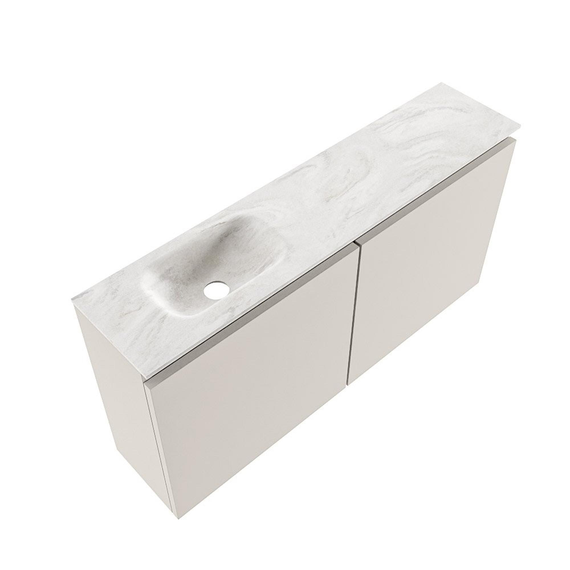 MONDIAZ TURE-DLUX meuble de toilettes 100cm Linen. EDEN lavabo Ostra position gauche. Avec 1 trou de robinet.