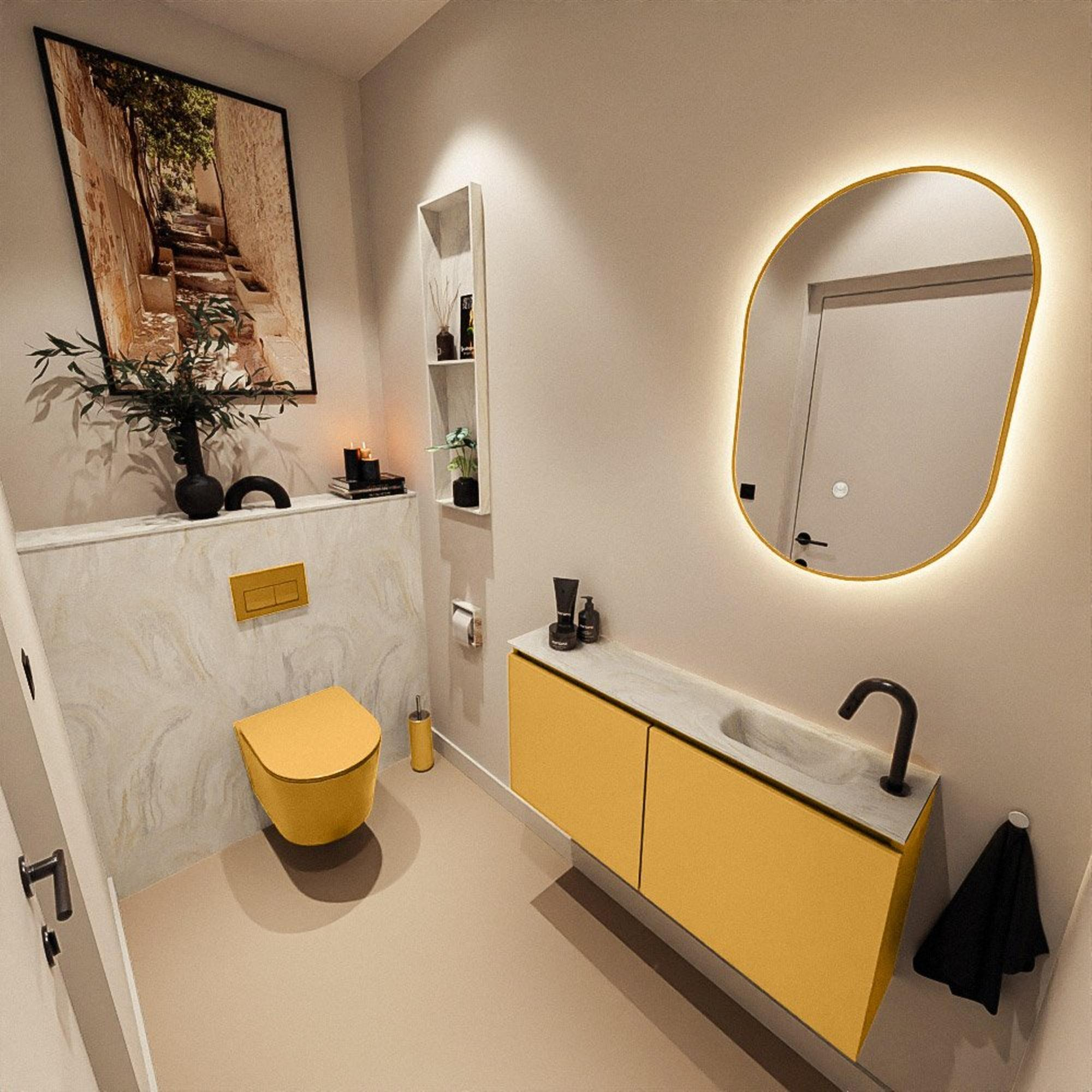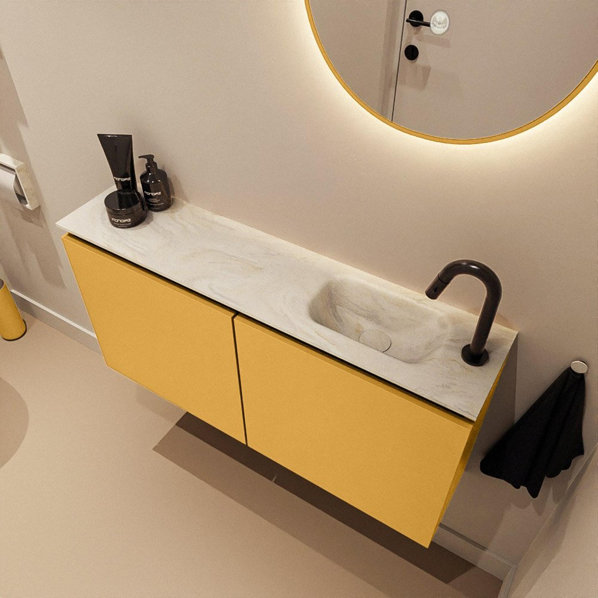 MONDIAZ TURE-DLUX meuble WC 100cm Ocher. EDEN lavabo Ostra position droite. Avec 1 trou de robinet.