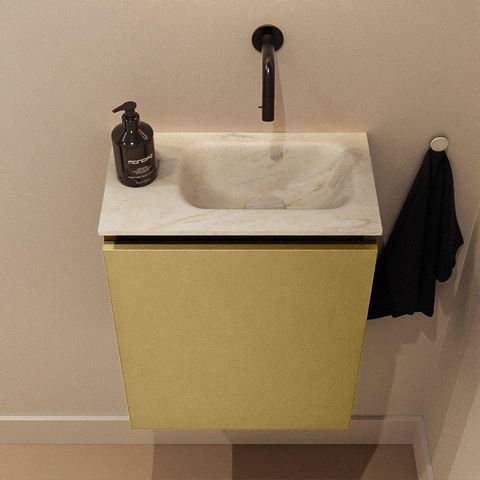 MONDIAZ TURE-DLUX meuble de toilettes 40 cm Oro. EDEN lavabo Ostra position à droite. Sans trou de robinet.