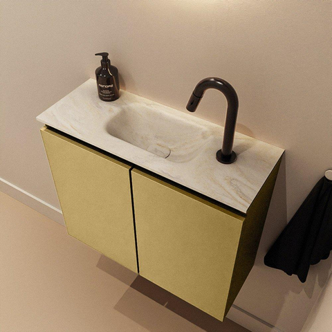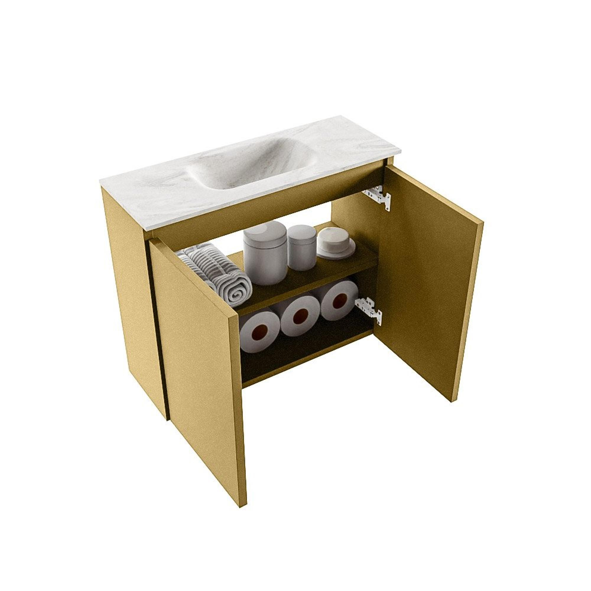 MONDIAZ TURE-DLUX Meuble de toilettes 60 cm Oro. Lavabo EDEN Ostra position milieu. Avec 1 trou de robinet.