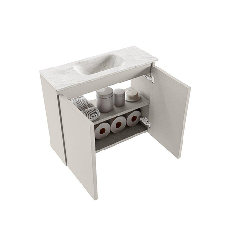MONDIAZ TURE-DLUX meuble WC 60cm Linen. EDEN lavabo Ostra position milieu. Avec 1 trou de robinet.