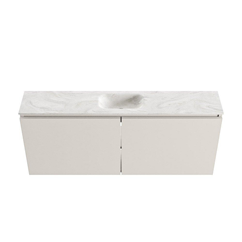 MONDIAZ TURE-DLUX Meuble de toilette 120 cm Linen. Lavabo EDEN Ostra position milieu. Sans trou de robinet.
