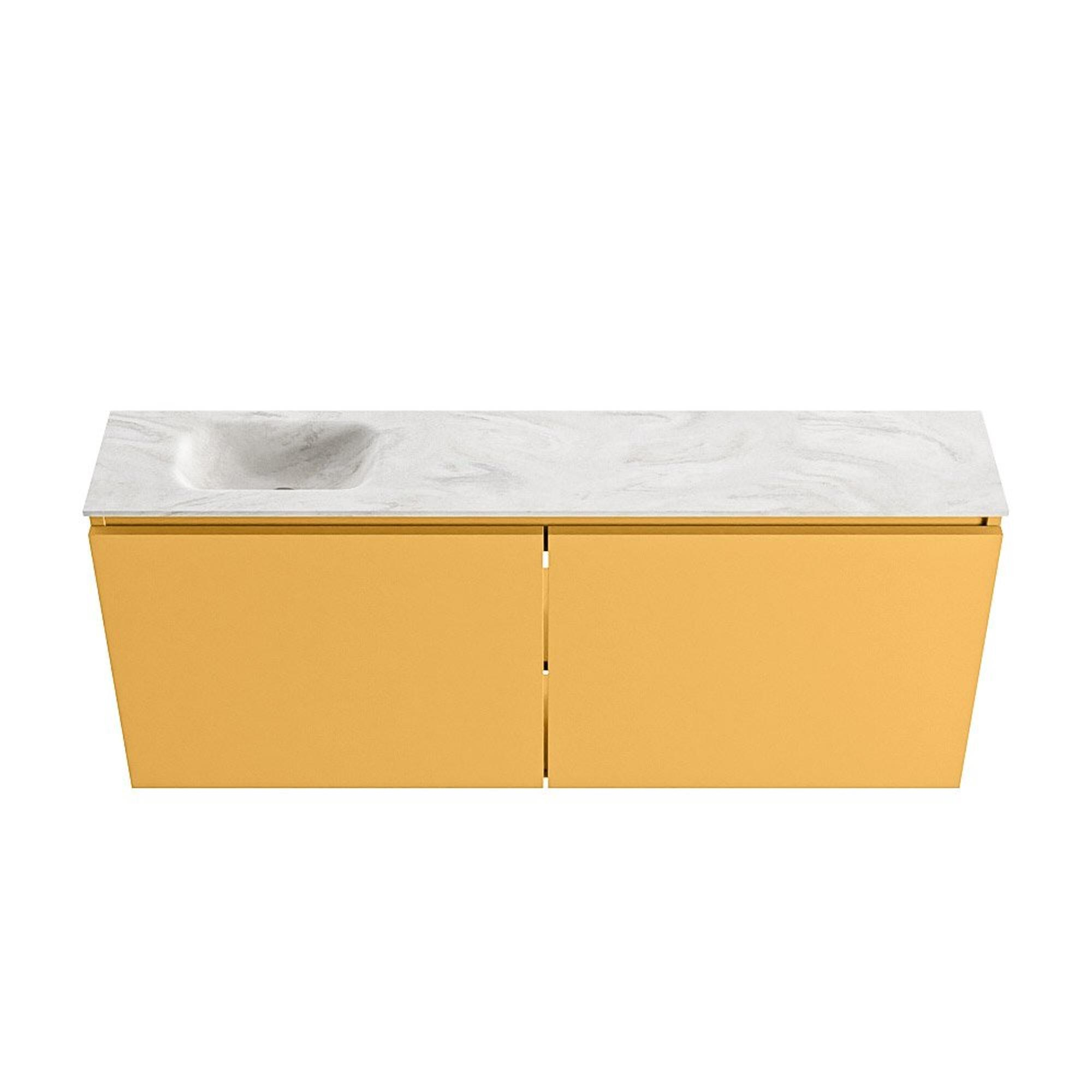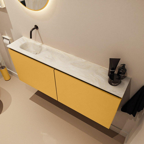 MONDIAZ TURE-DLUX meuble WC 120 cm Ocher. EDEN lavabo Ostra position gauche. Sans trou de robinet.