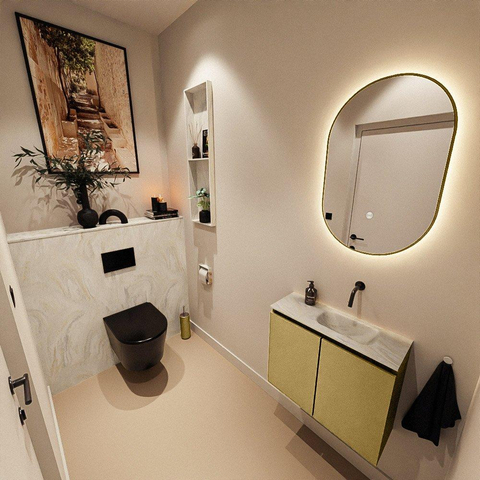 MONDIAZ TURE-DLUX Meuble WC 60cm Oro. Lavabo EDEN Ostra position droite. Sans trou de robinet.
