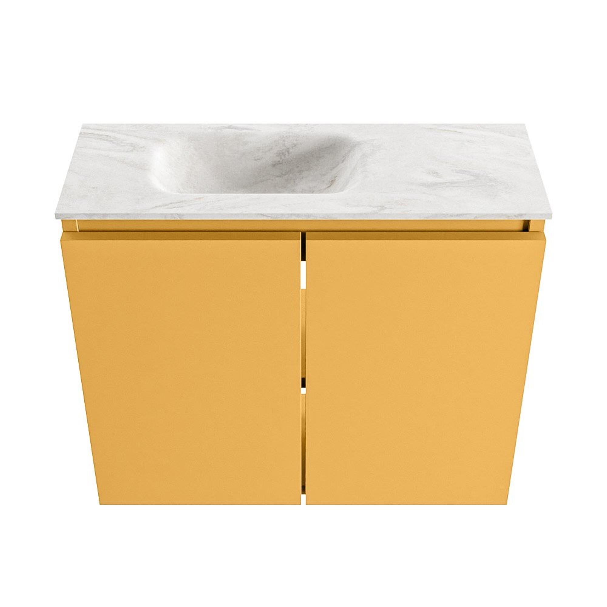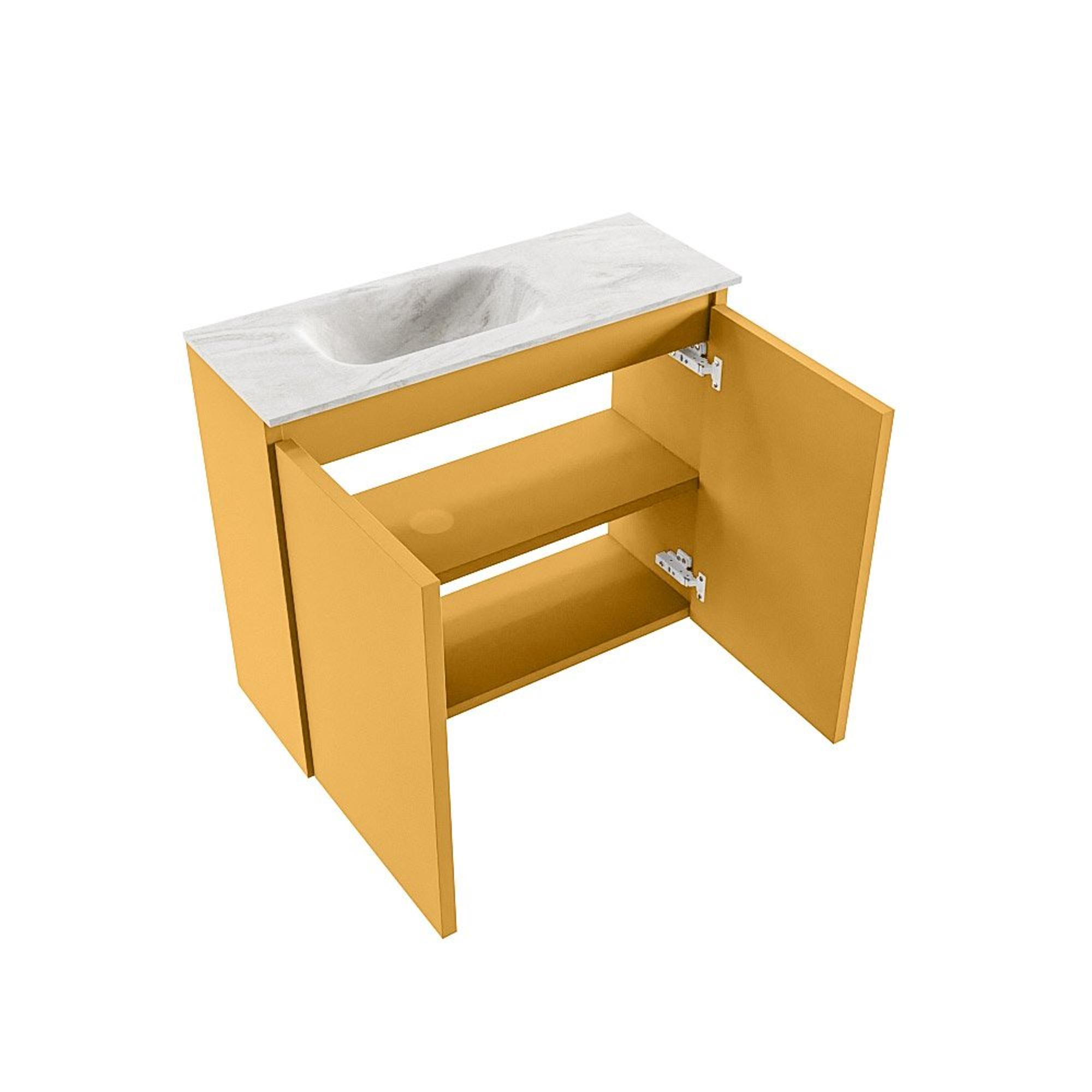 MONDIAZ TURE-DLUX meuble de toilettes 60 cm Ocher. Lavabo EDEN Ostra position à gauche. Sans trou de robinet.
