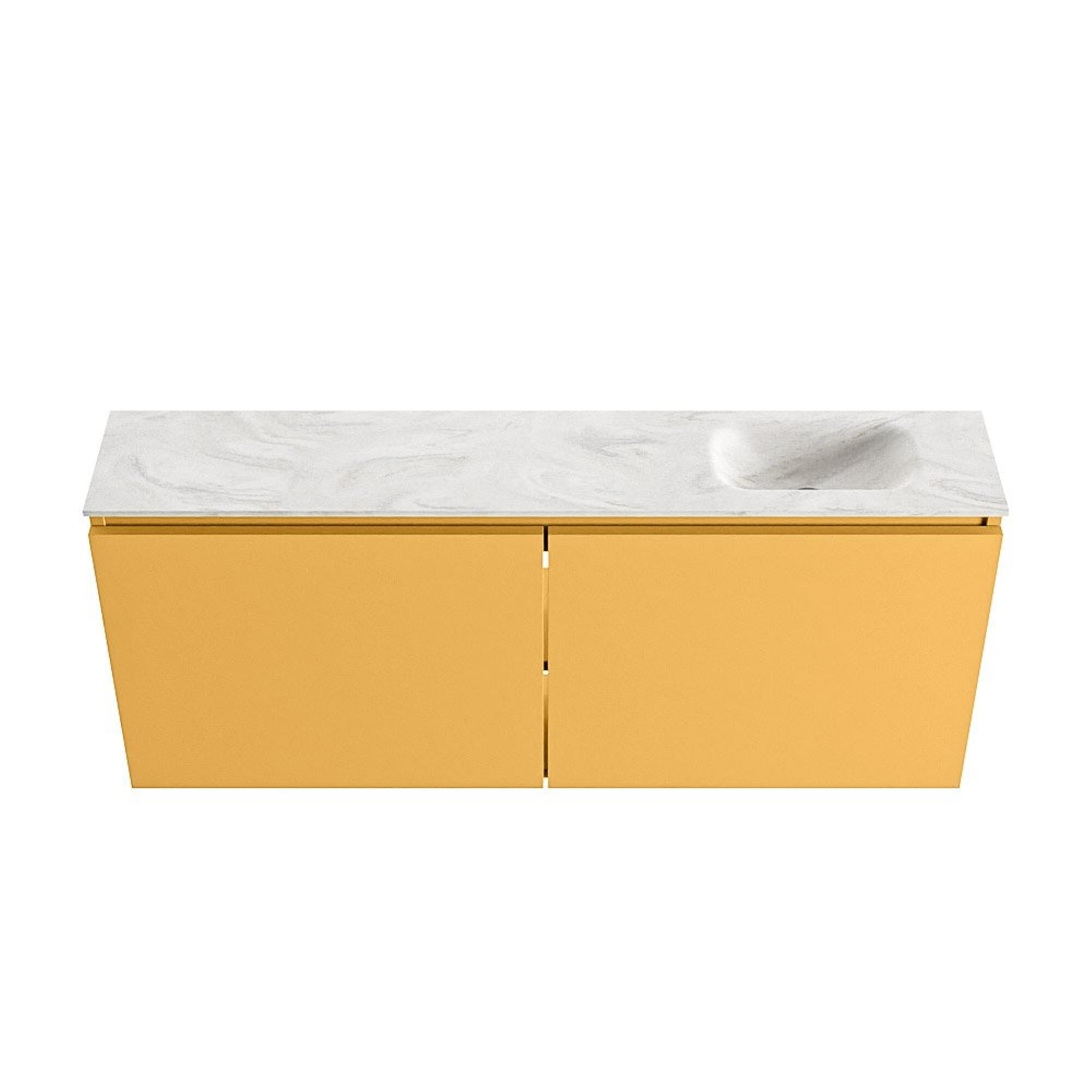 MONDIAZ TURE-DLUX meuble WC 120 cm Ocher. EDEN vasque Ostra position à droite. Avec 1 trou de robinet.