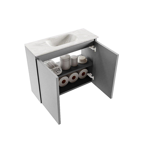 MONDIAZ TURE-DLUX meuble WC 60cm Plata. EDEN lavabo Ostra position centrale. Sans trou de robinet.