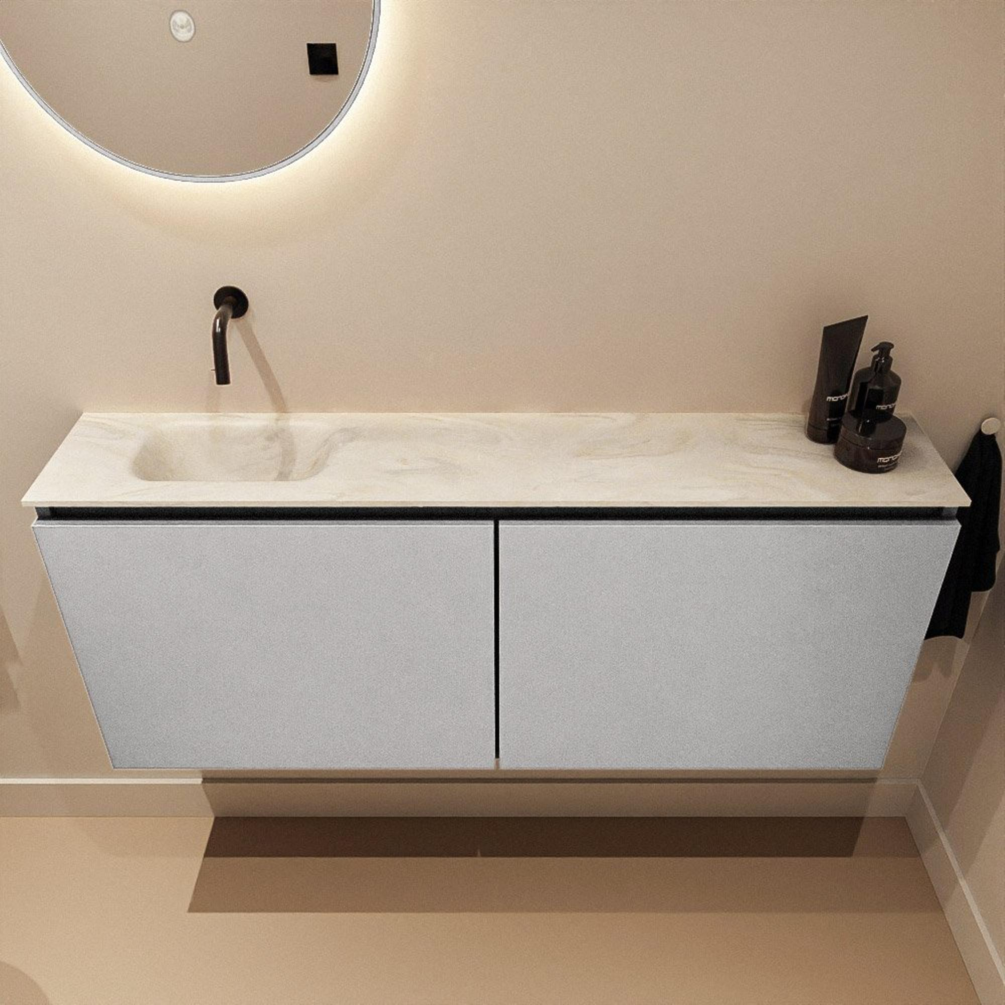 MONDIAZ TURE-DLUX meuble de toilettes 120 cm Plata. EDEN lavabo Ostra position gauche. Sans trou de robinet.