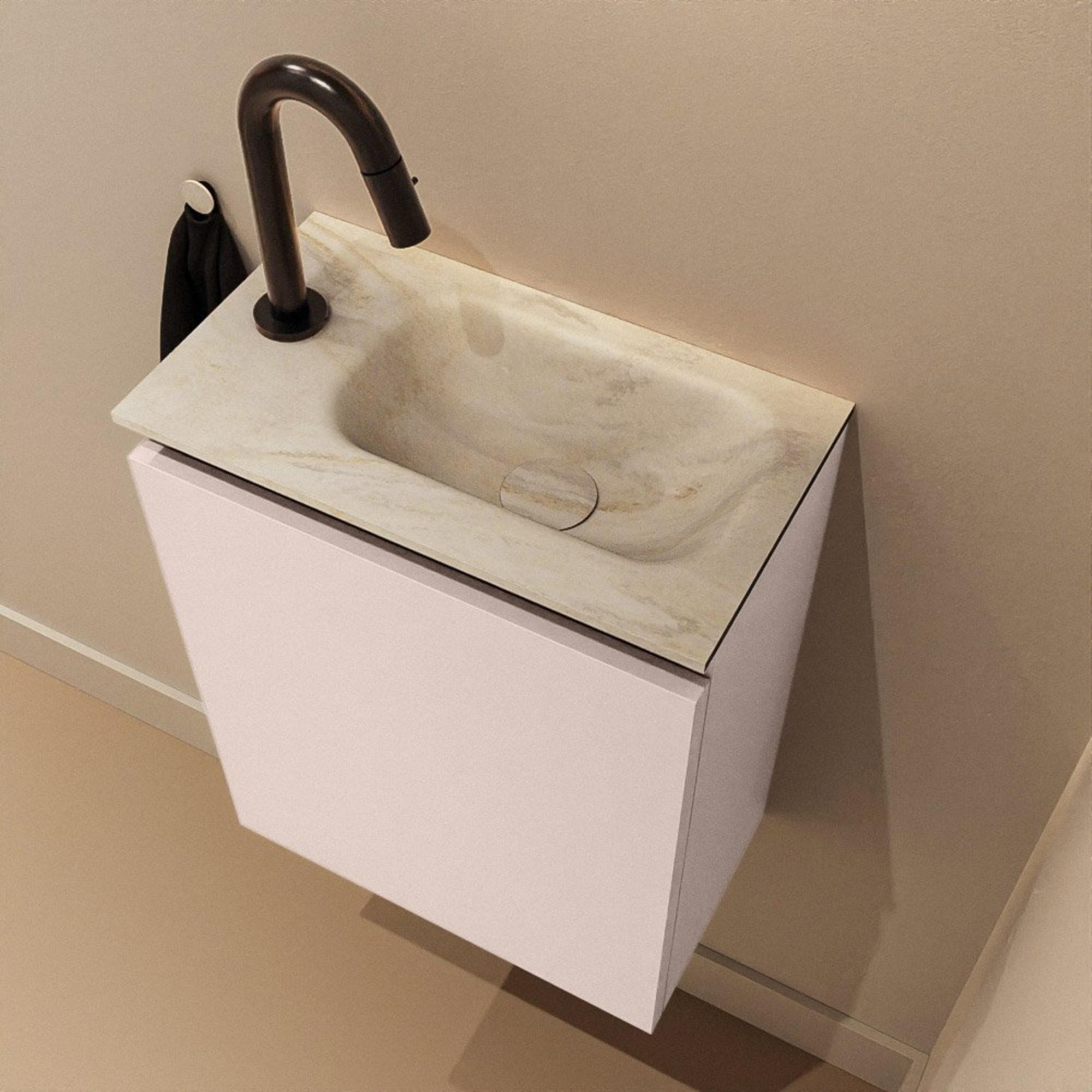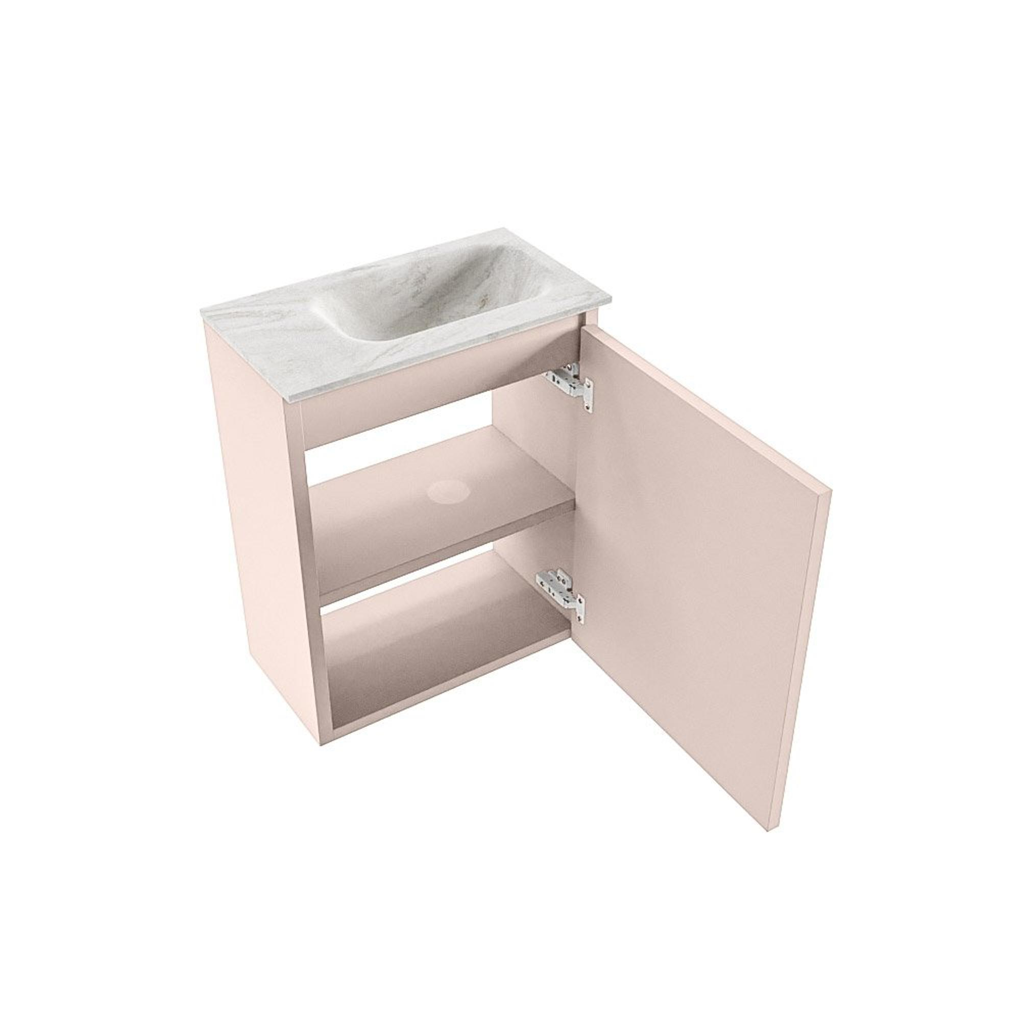 MONDIAZ TURE-DLUX Meuble WC 40 cm Rosee. Lavabo EDEN Ostra position droite. Avec 1 trou de robinet.