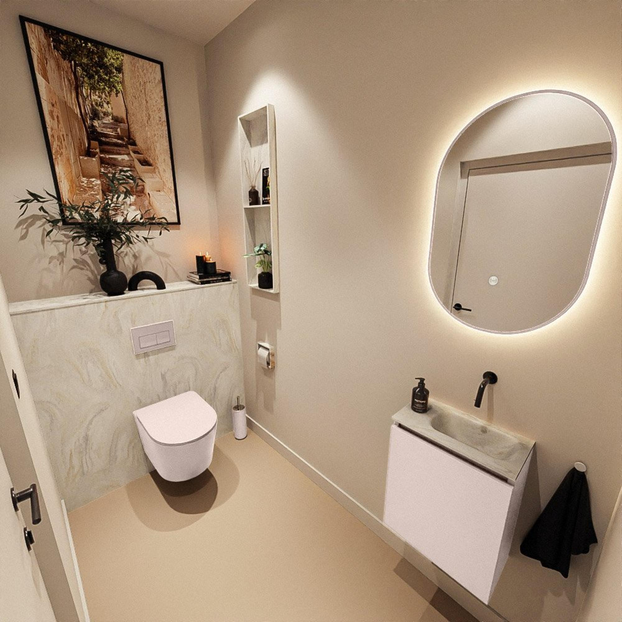 MONDIAZ TURE-DLUX Meuble de toilettes 40 cm Rosee. Lavabo EDEN Ostra position droite. Sans trou de robinet.