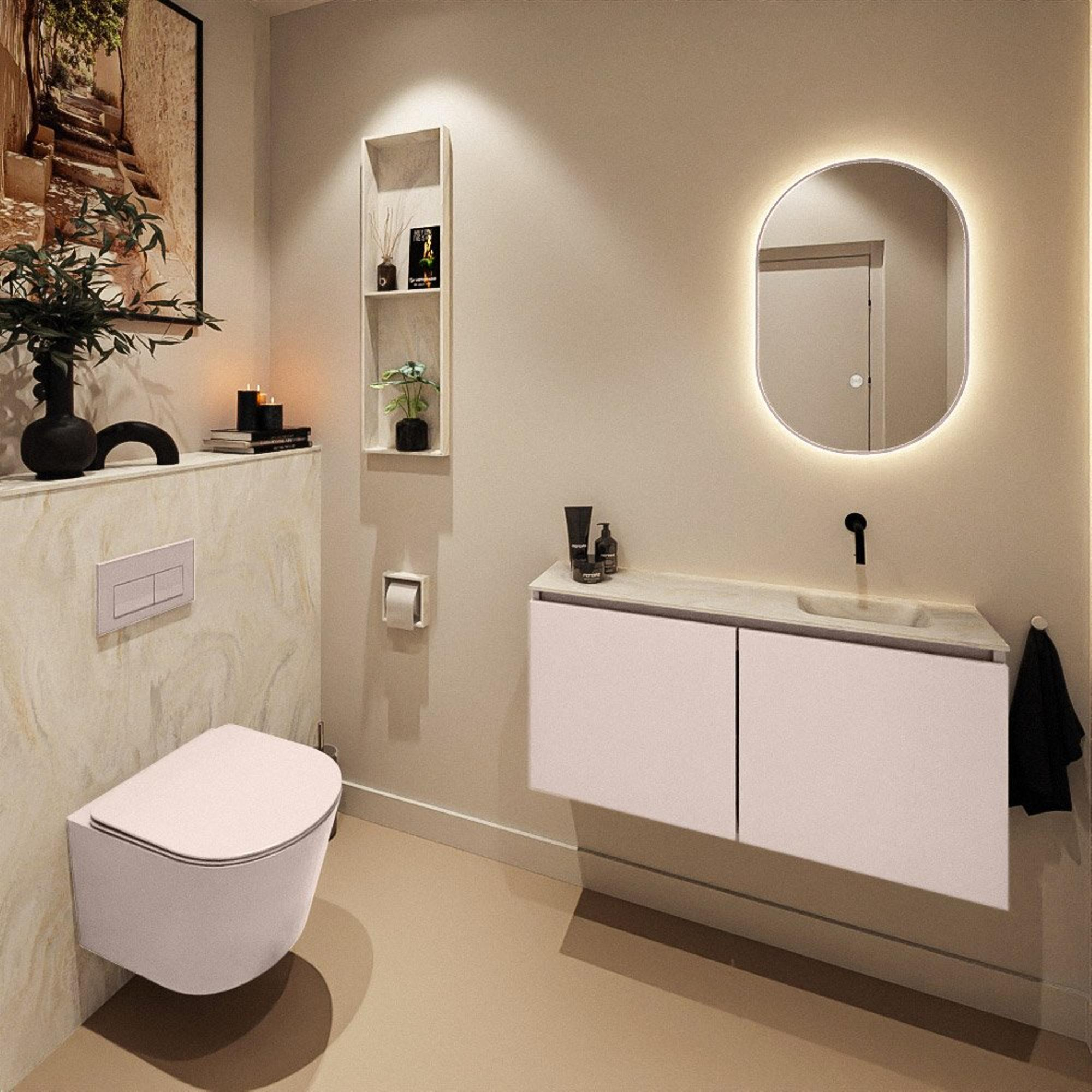 MONDIAZ TURE-DLUX 100cm meuble de toilette Rosee. EDEN lavabo Ostra position droite. Sans trou de robinet.