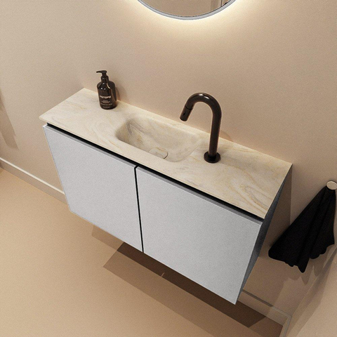 MONDIAZ TURE-DLUX Meuble de toilette 80 cm Plata. Vasque EDEN Ostra position milieu. Avec 1 trou de robinet.