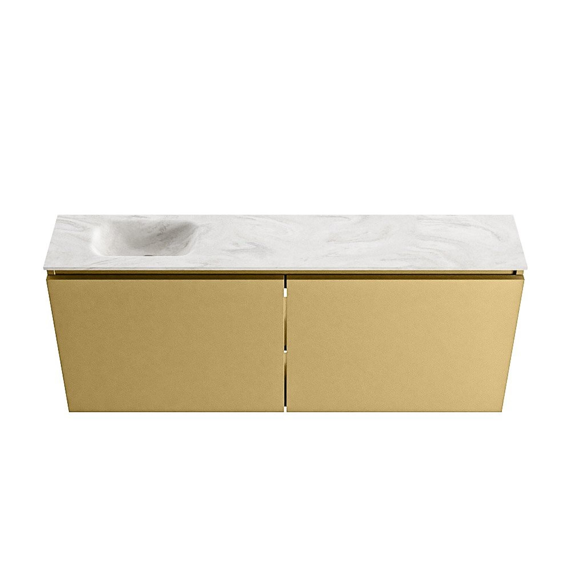 MONDIAZ TURE-DLUX meuble WC 120 cm Oro. EDEN vasque Ostra position gauche. Sans trou de robinet.