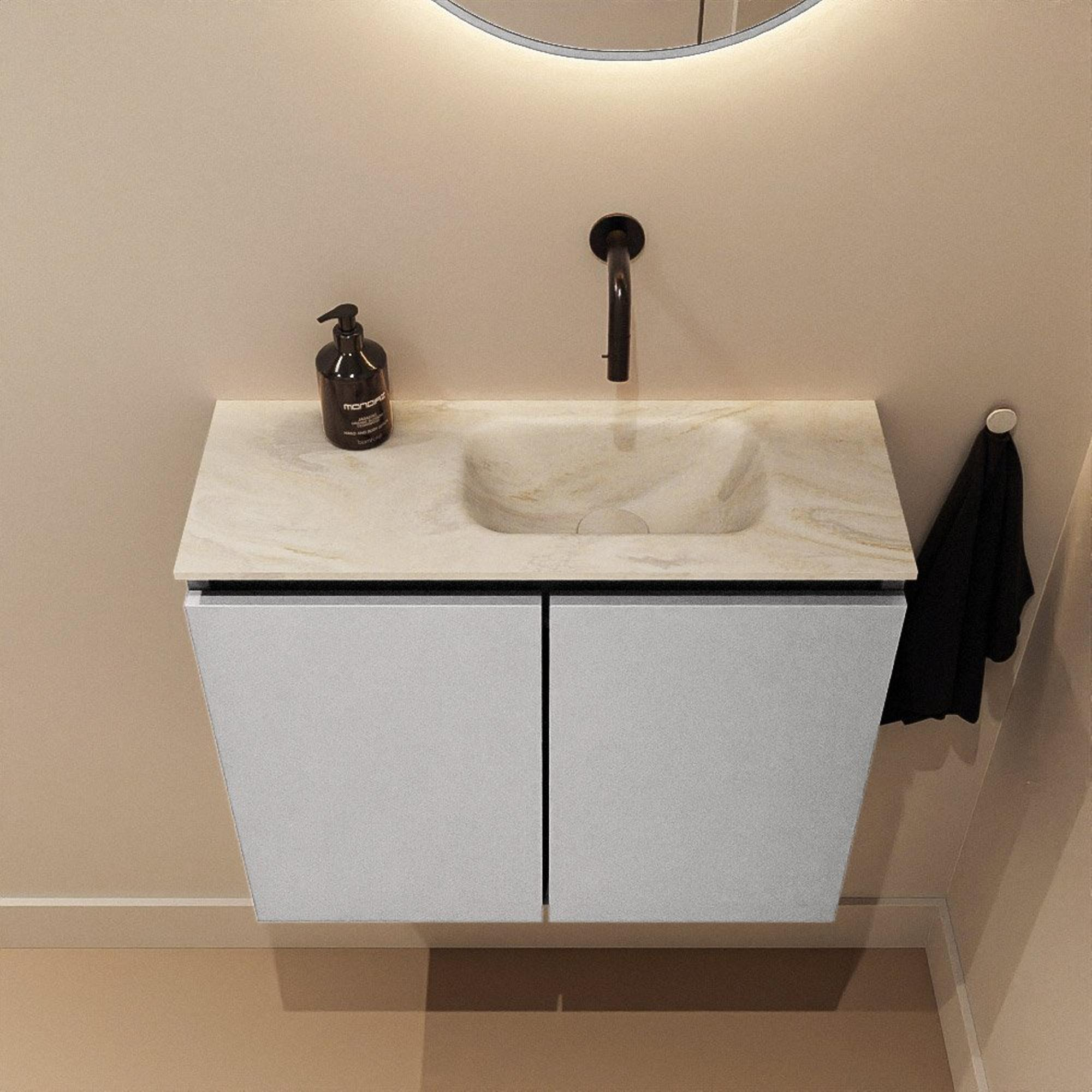 MONDIAZ TURE-DLUX Meuble WC 60cm Plata. EDEN lavabo Ostra position droite. Sans trou de robinet.