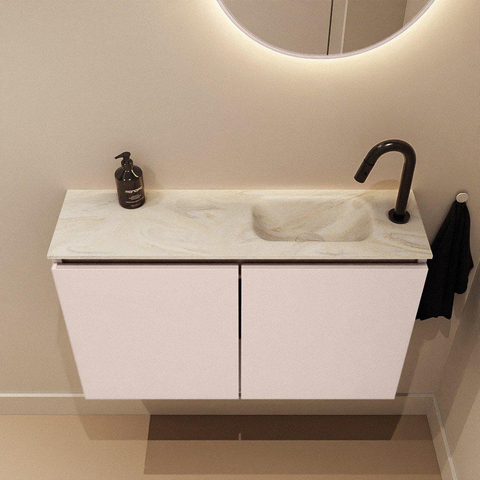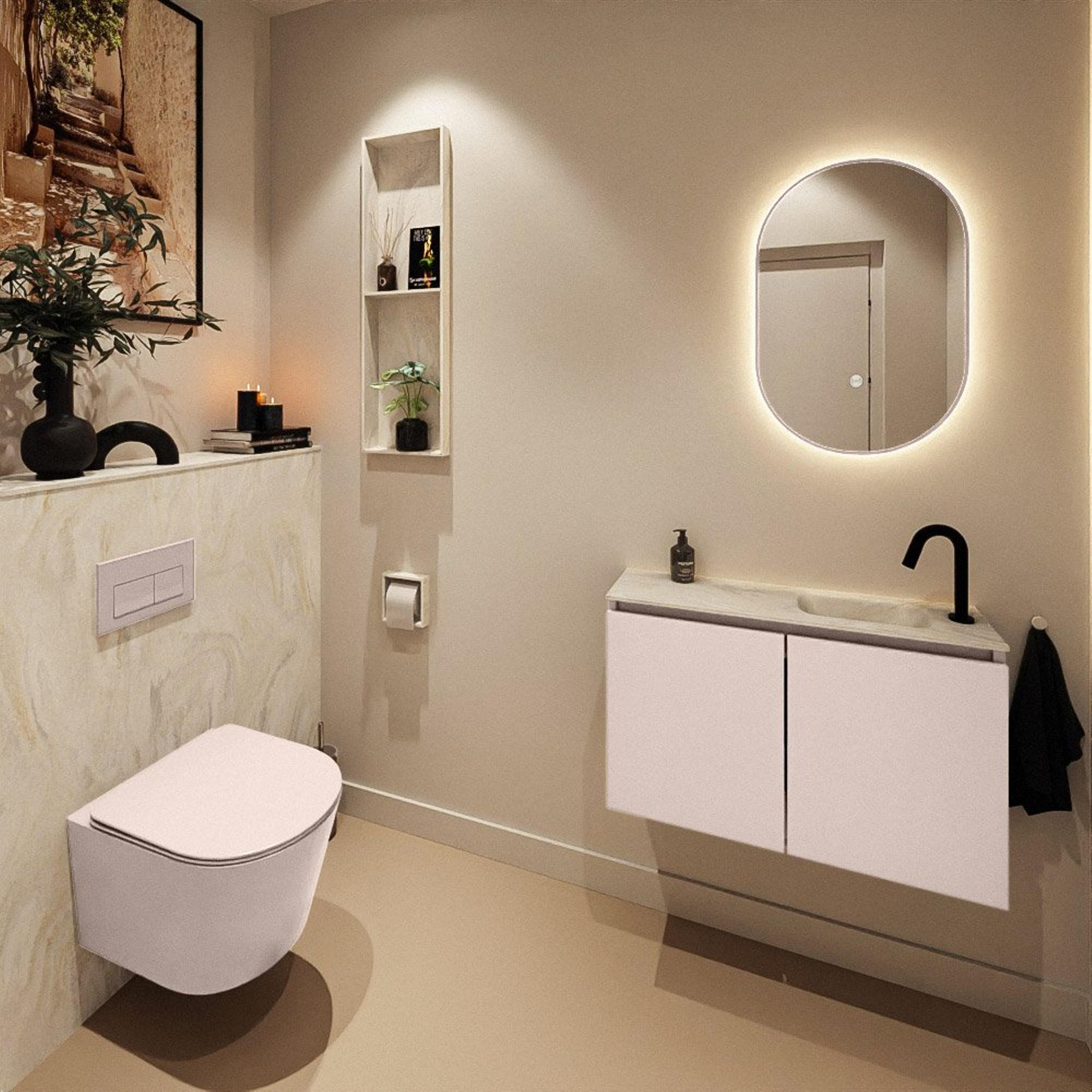MONDIAZ TURE-DLUX Meuble WC 80cm Rosee. EDEN lavabo Ostra position droite. Avec 1 trou de robinet.