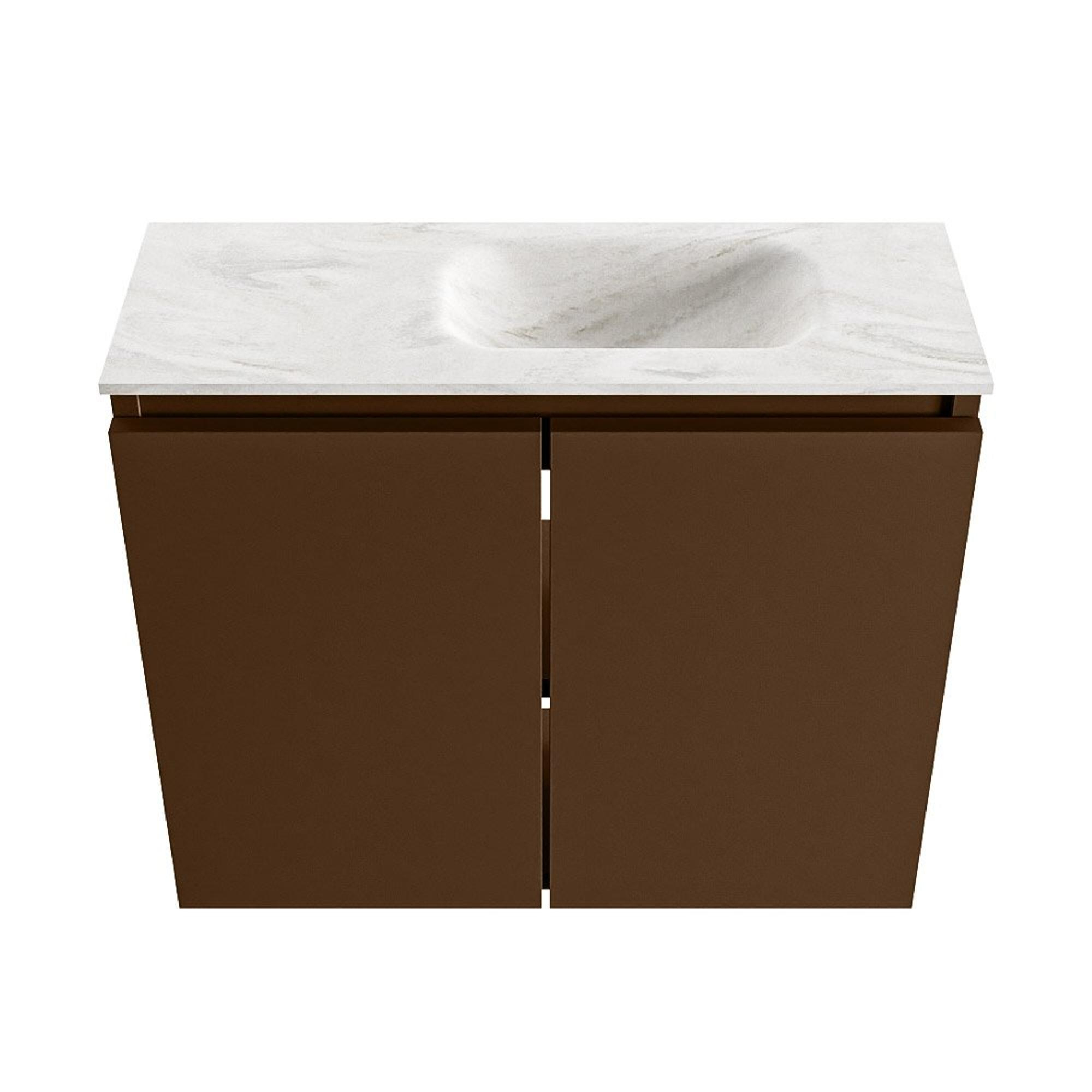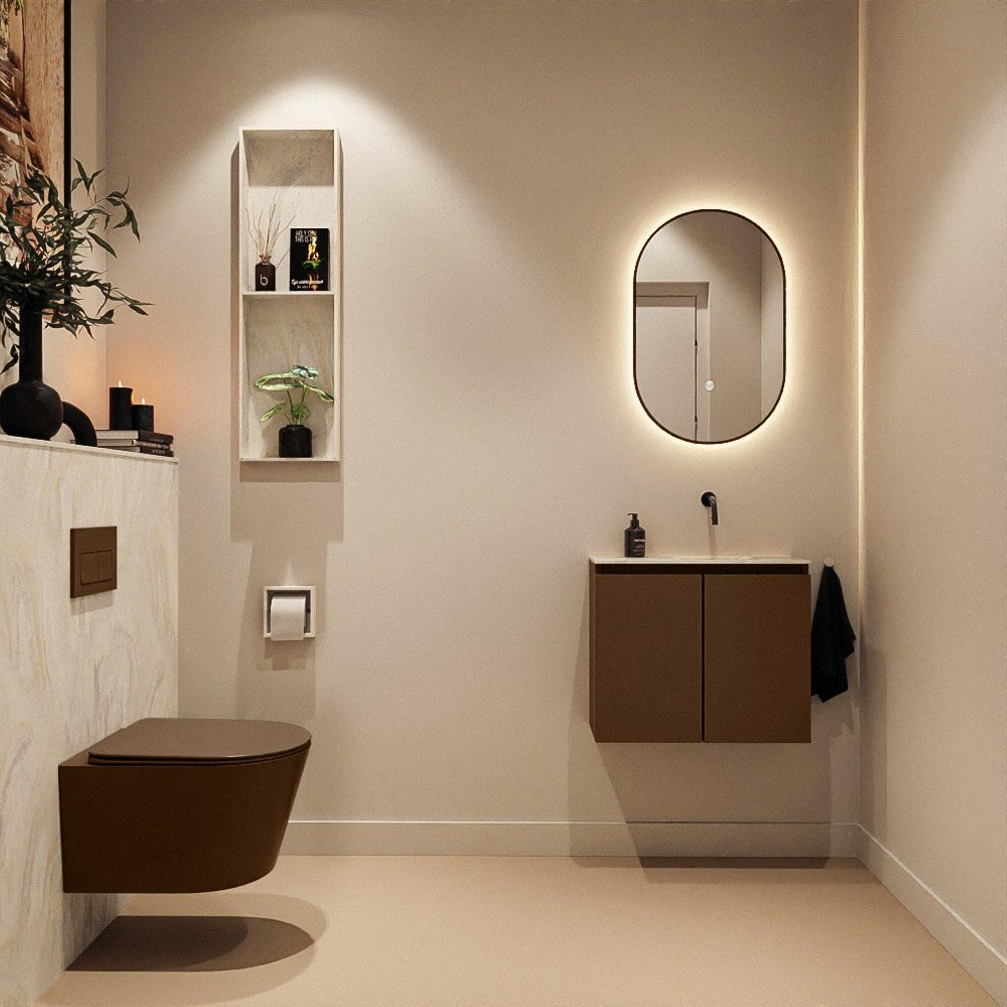 MONDIAZ TURE-DLUX meuble de toilette 60cm Rust. EDEN lavabo Ostra position droite. Sans trou de robinet.