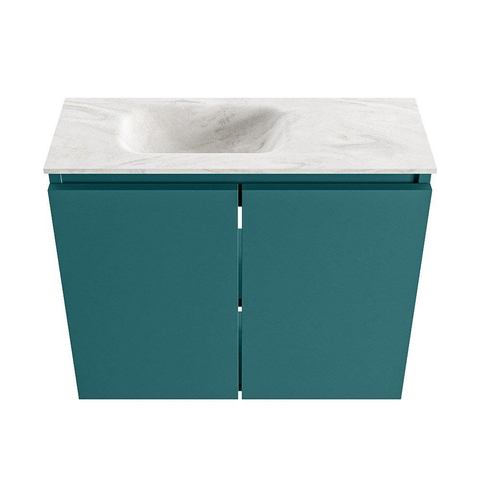 Ce meuble compact avec lavabo intégré est idéal si vous souhaitez un peu plus de confort et d’espace de rangement dans un WC ou une petite salle de bains, sans que la pièce paraisse encombrée. Grâce à la faible profondeur, il reste suffisamment d’espace pour circuler, tout en créant un véritable espace de lavage pour se laver les mains, retoucher son maquillage ou une petite toilette rapide. La combinaison d’une couleur de meuble moderne, verte, avec un élégant lavabo couleur crème s’intègre parfaitement dans un intérieur contemporain, mais se marie aussi très bien avec des matériaux naturels comme le bois et des carreaux clairs. Grâce à la position du trou de robinet à gauche, c’est un choix astucieux lorsque, par exemple, vous avez un WC suspendu à droite du meuble ou que vous êtes lié à la tuyauterie dans le mur.