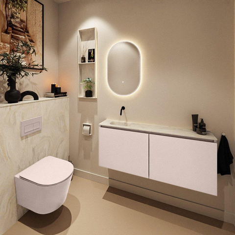MONDIAZ TURE-DLUX 120cm meuble WC Rosee. EDEN lavabo Ostra position gauche. Sans trou de robinet.