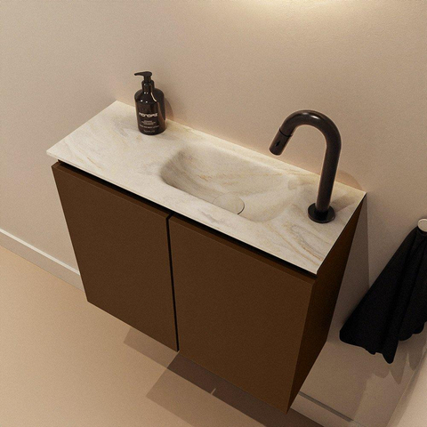 MONDIAZ TURE-DLUX Meuble WC 60 cm Rust. EDEN lavabo Ostra position à droite. Avec 1 trou de robinet.
