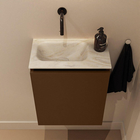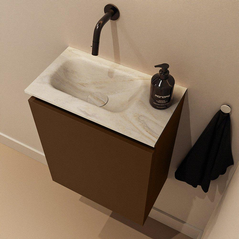 MONDIAZ TURE-DLUX Meuble de toilettes 40 cm Rust. EDEN lavabo Ostra position gauche. Sans trou de robinet.