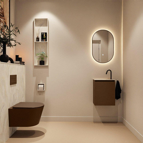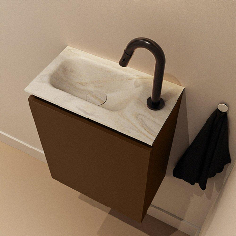 MONDIAZ TURE-DLUX meuble WC 40 cm Rust. EDEN lavabo Ostra position gauche. Avec 1 trou de robinet.