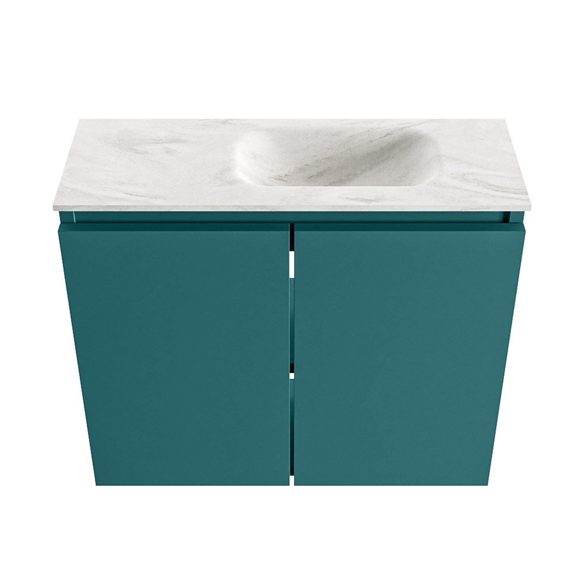 Ce meuble WC compact est idéal si vous souhaitez créer malgré tout un point d’eau élégant et pratique dans un petit espace toilettes ou une salle de bains étroite. Grâce à sa faible profondeur, il s’intègre aisément dans un passage restreint ou une niche, tandis que son large plateau et le lavabo intégré vous permettent malgré tout de vous laver confortablement les mains. Les lignes droites modernes, la façade sans poignées et la combinaison d’une teinte verte douce avec un lavabo de couleur crème offrent un aspect apaisant et contemporain. Vous transformez ainsi vos toilettes ou votre petite salle de bains en un espace soigné et accueillant, en harmonie avec le reste de votre intérieur. Les deux portes vous offrent en outre suffisamment d’espace de rangement pour le papier toilette, le savon et les produits d’entretien, de sorte que tout reste bien dissimulé et que votre espace présente toujours un aspect soigné.