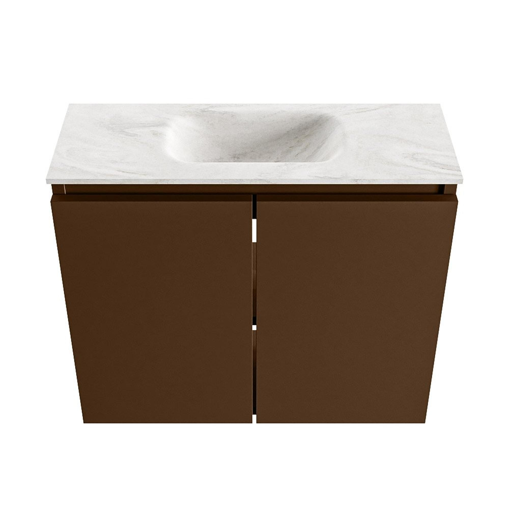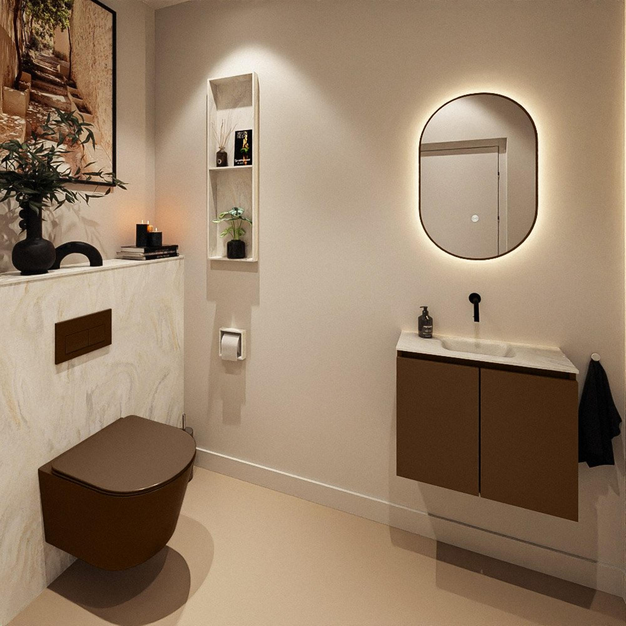 MONDIAZ TURE-DLUX meuble de toilettes 60 cm Rust. EDEN lavabo Ostra position milieu. Sans trou de robinet.