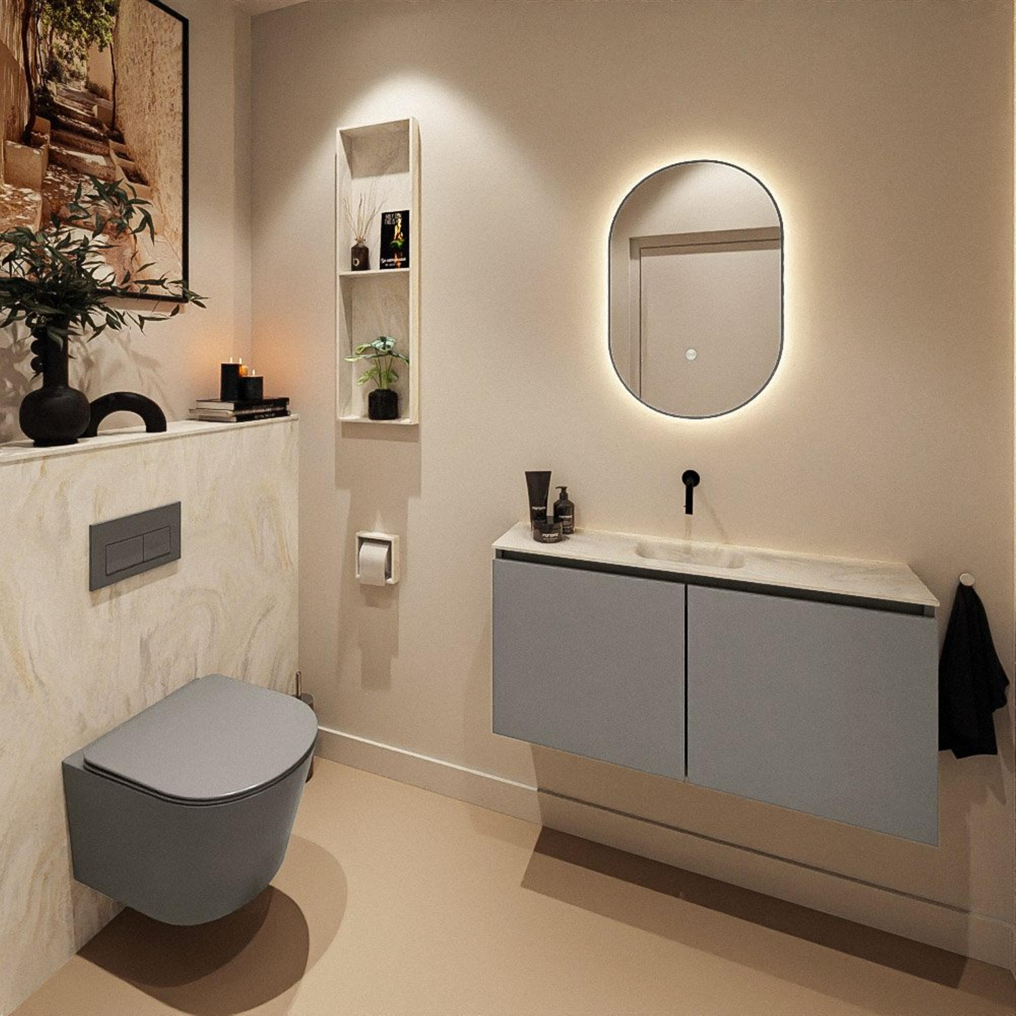 MONDIAZ TURE-DLUX meuble WC 100cm Smoke. Lavabo EDEN Ostra position milieu. Sans trou de robinet.