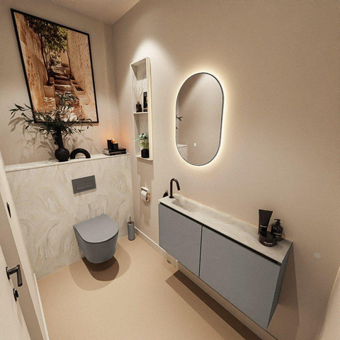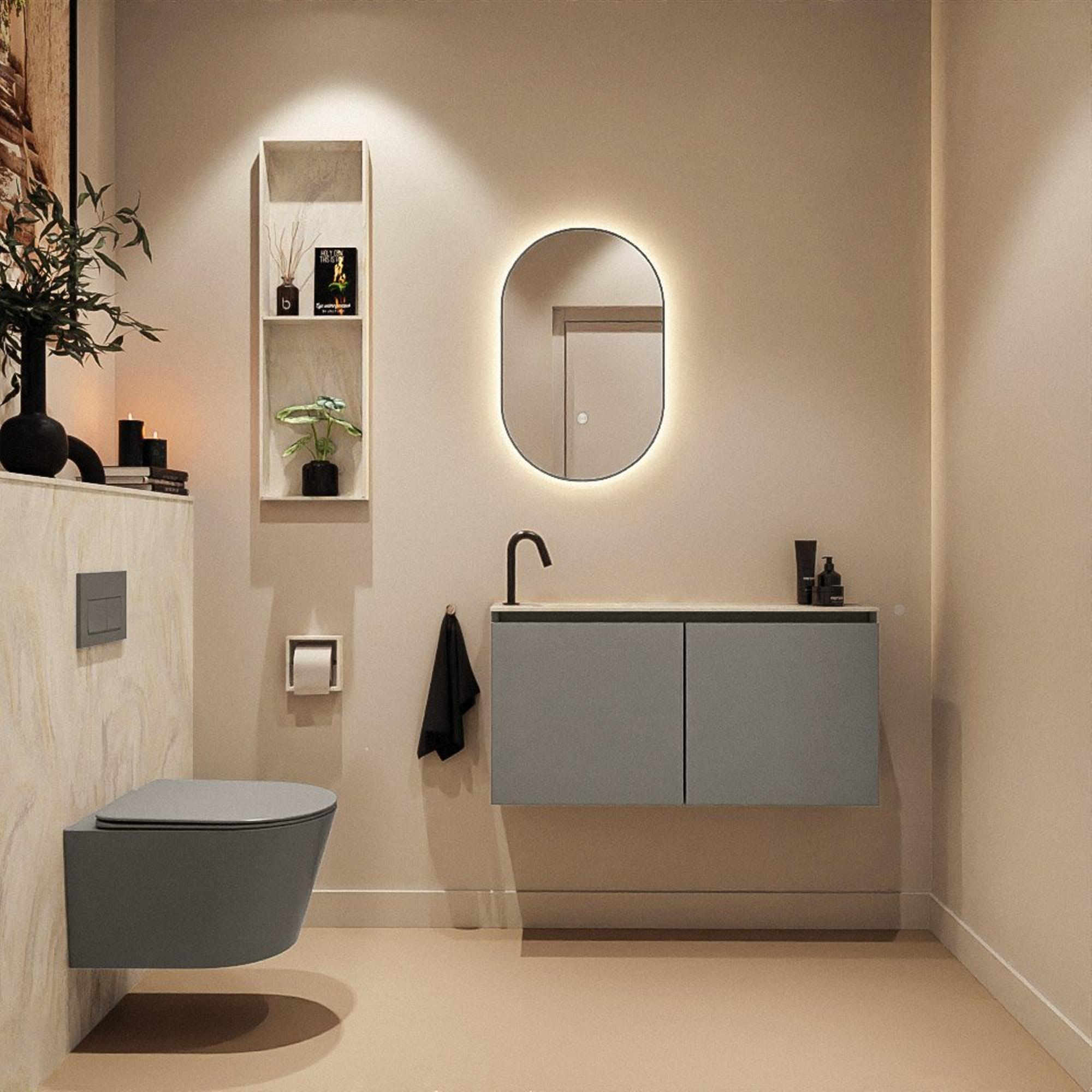 MONDIAZ TURE-DLUX Meuble de toilettes 100cm Smoke. EDEN lavabo Ostra position gauche. Avec 1 trou de robinet.