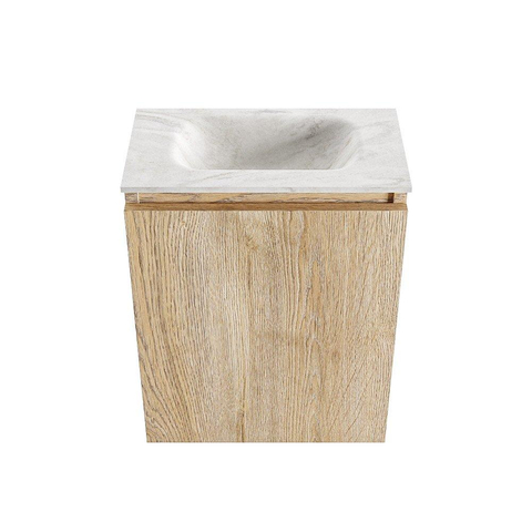 MONDIAZ TURE-DLUX Meuble WC 40 cm Washed Oak. EDEN lavabo Ostra position milieu. Sans trou de robinet.