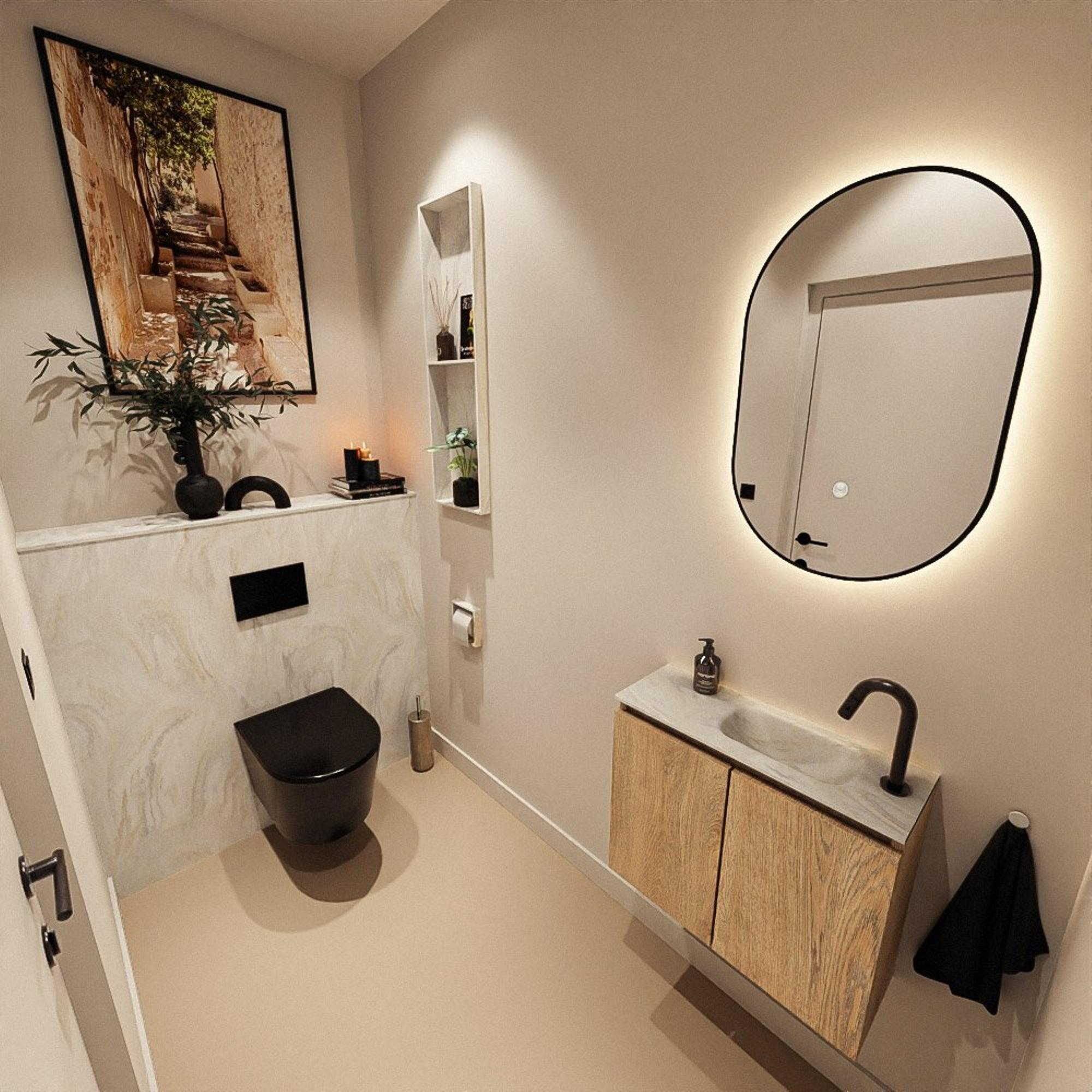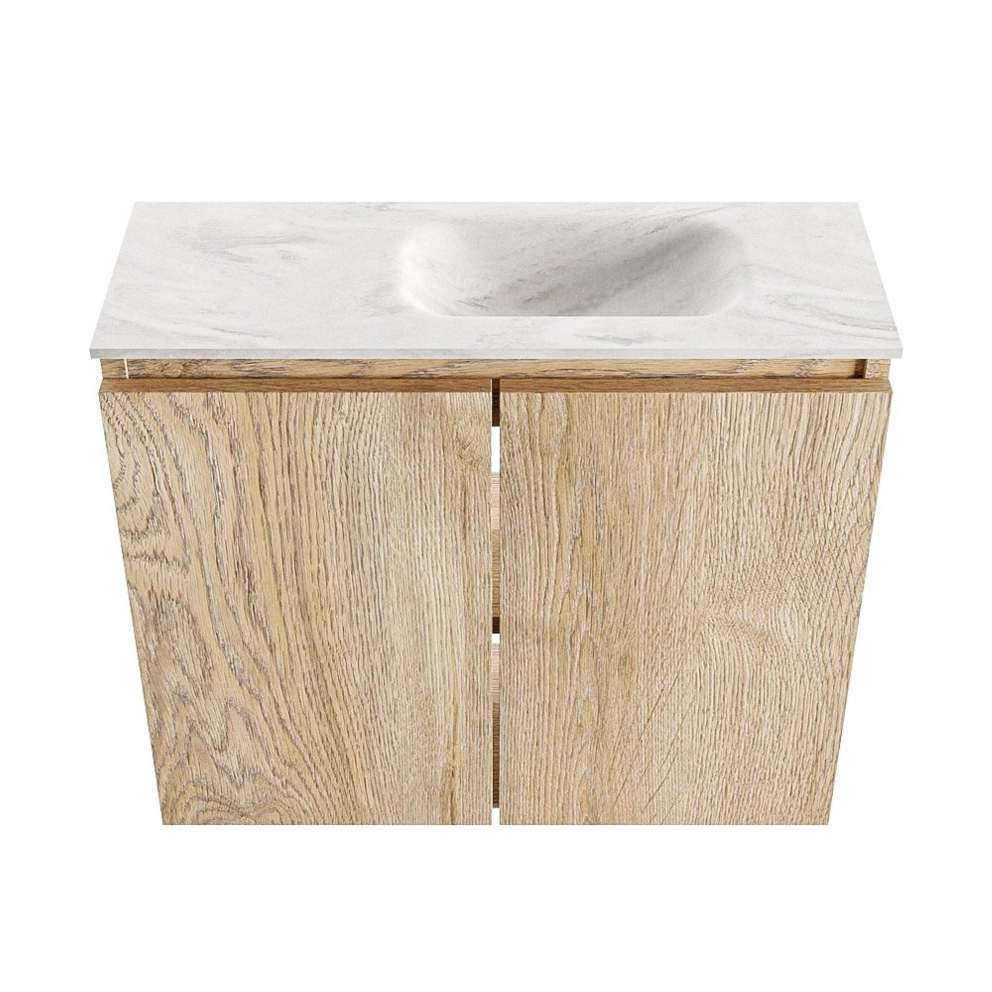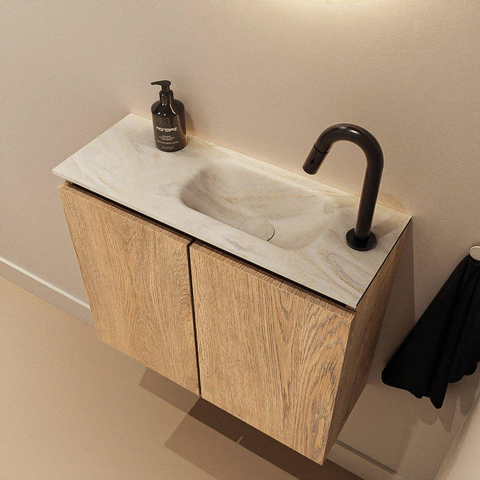 MONDIAZ TURE-DLUX meuble de toilettes 60cm Washed Oak. EDEN lavabo Ostra position droite. Avec 1 trou de robinet.