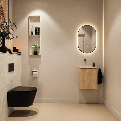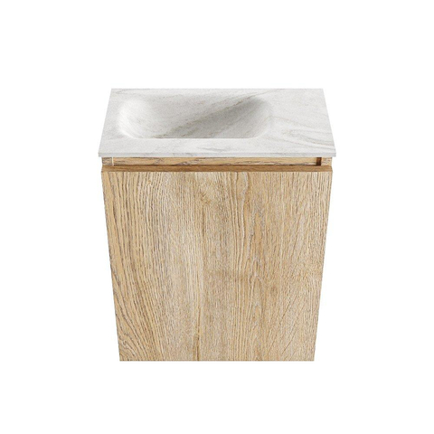 MONDIAZ TURE-DLUX Meuble de toilettes 40 cm Washed Oak. Lavabo EDEN Ostra position gauche. Sans trou de robinet.