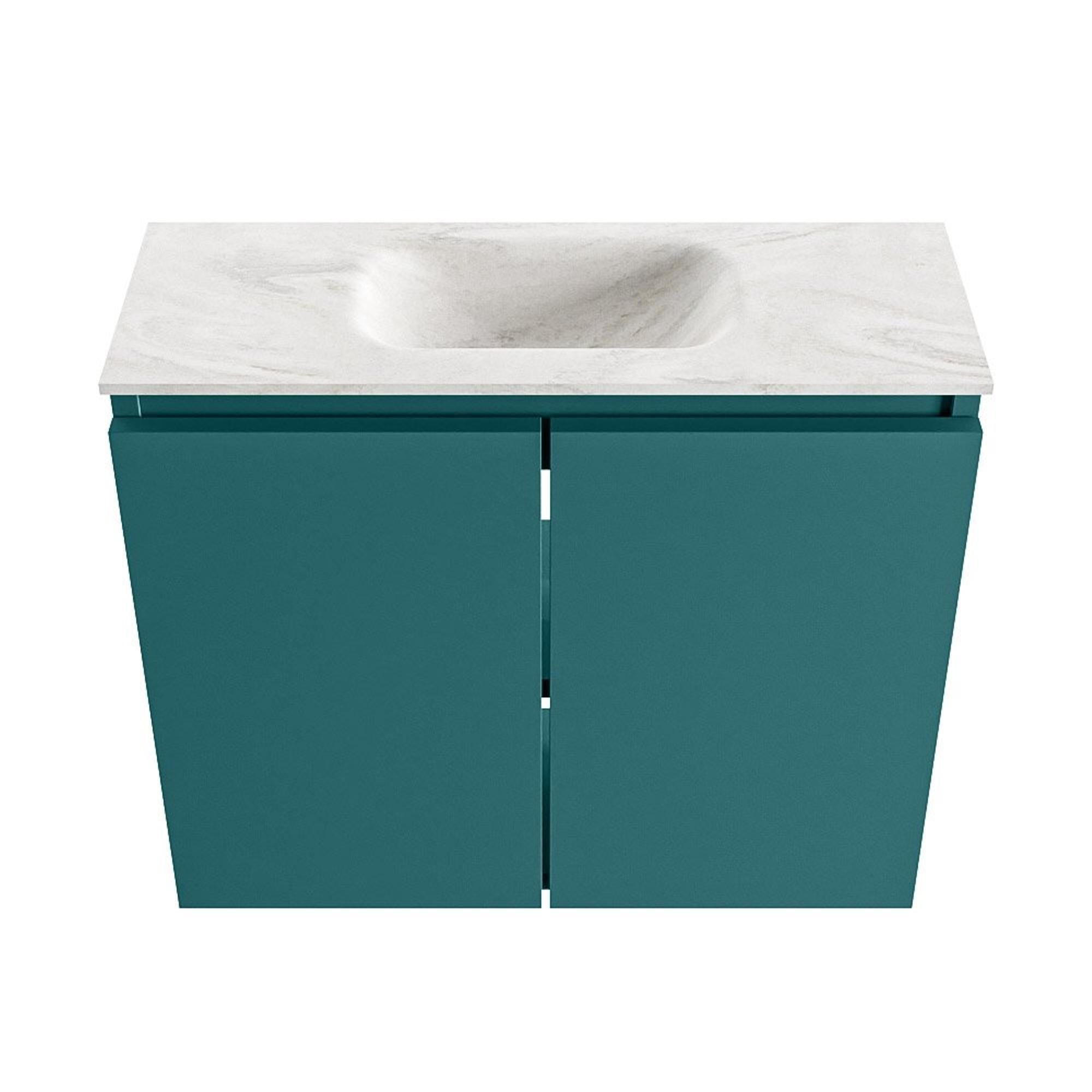 Le meuble est fabriqué en MDF, un matériau particulièrement adapté aux meubles de salle de bains grâce à sa finition soignée et à sa stabilité dimensionnelle. Le plan en Solid Surface avec vasque Eden intégrée n’est pas seulement esthétique, mais aussi pratique : la surface est lisse, ce qui empêche la saleté d’adhérer facilement et rend le nettoyage rapide et simple. Avec un seul trou de robinet central, vous avez toute liberté de choisir un robinet de lavabo contemporain adapté à votre style. Les deux portes offrent un espace de rangement pour les rouleaux de papier toilette, le savon, les produits de nettoyage ou les serviettes invité, de sorte que tout soit rangé de manière claire et que vos toilettes paraissent toujours bien ordonnées. Vous profitez ainsi chaque jour d’un ensemble fonctionnel, hygiénique et esthétique.