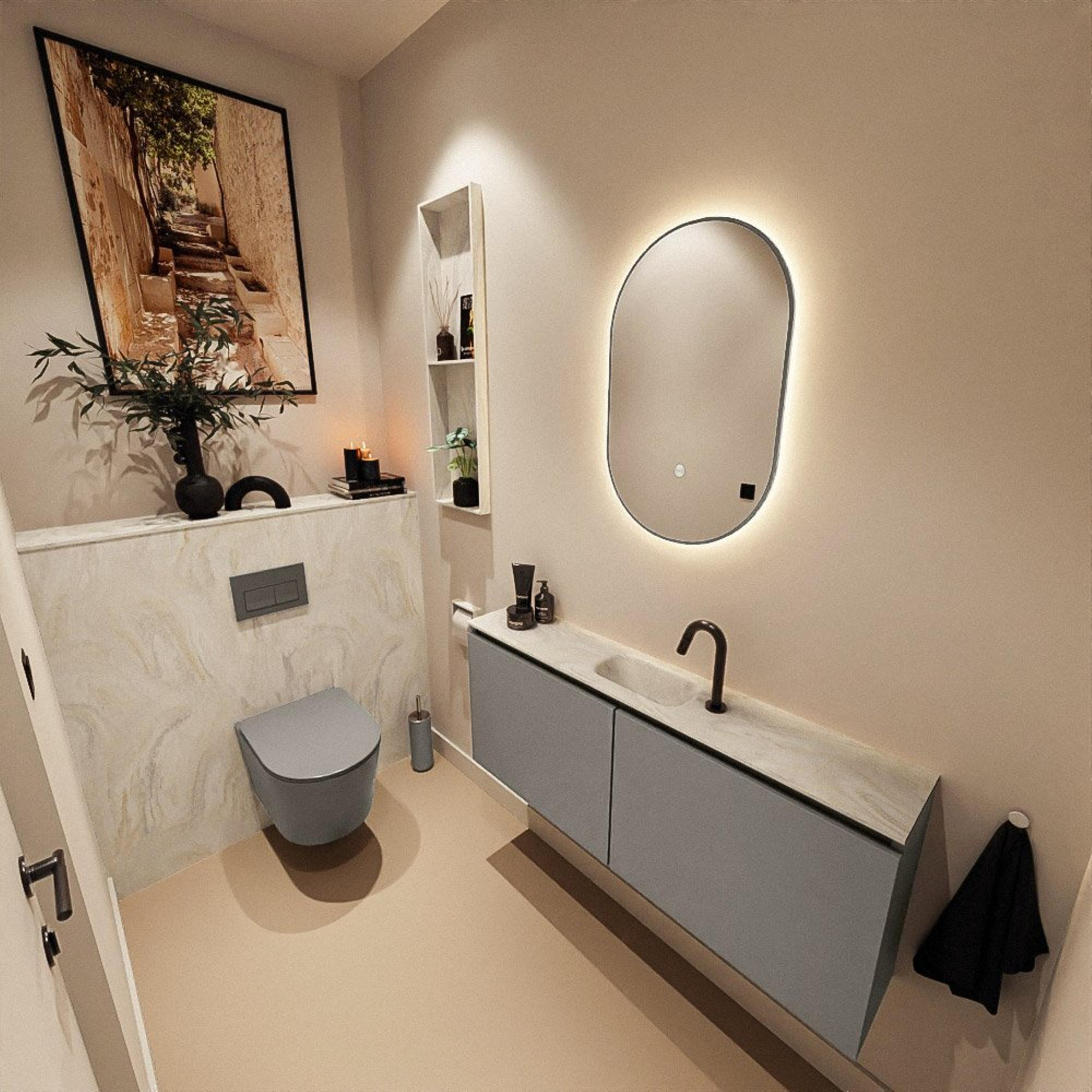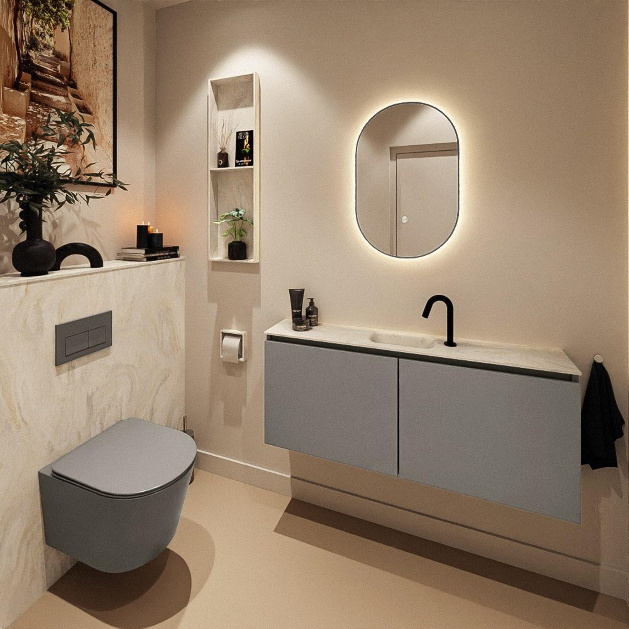 MONDIAZ TURE-DLUX Meuble WC 120cm Smoke. EDEN lavabo Ostra position milieu. Avec 1 trou de robinet.