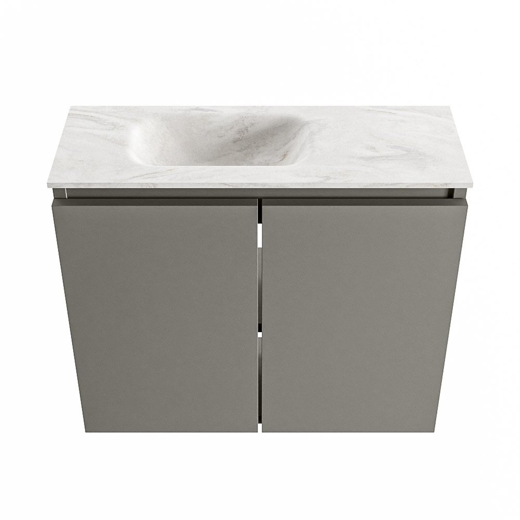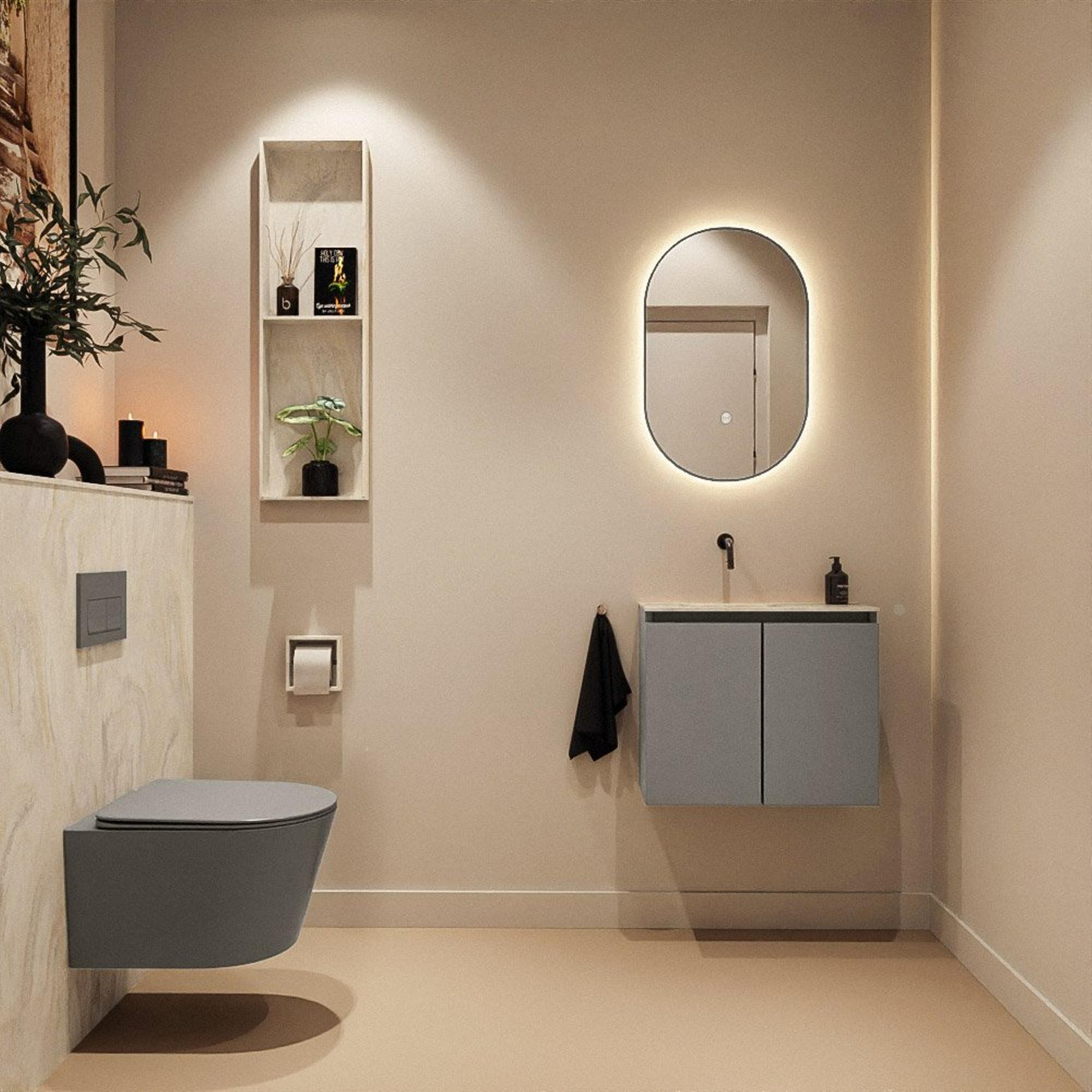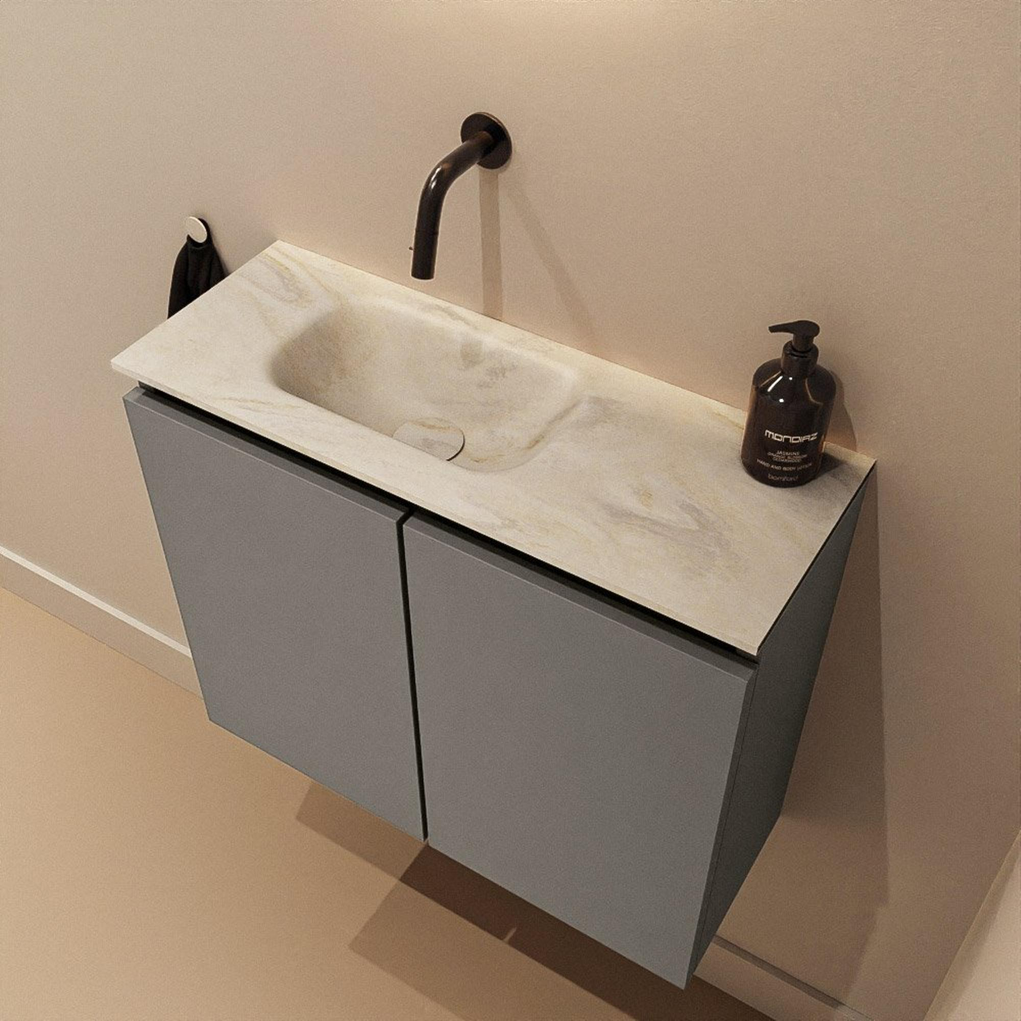 MONDIAZ TURE-DLUX meuble de toilettes 60cm Smoke. EDEN lavabo Ostra position gauche. Sans trou de robinet.