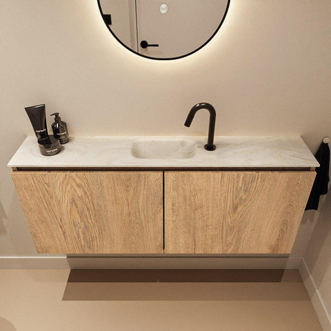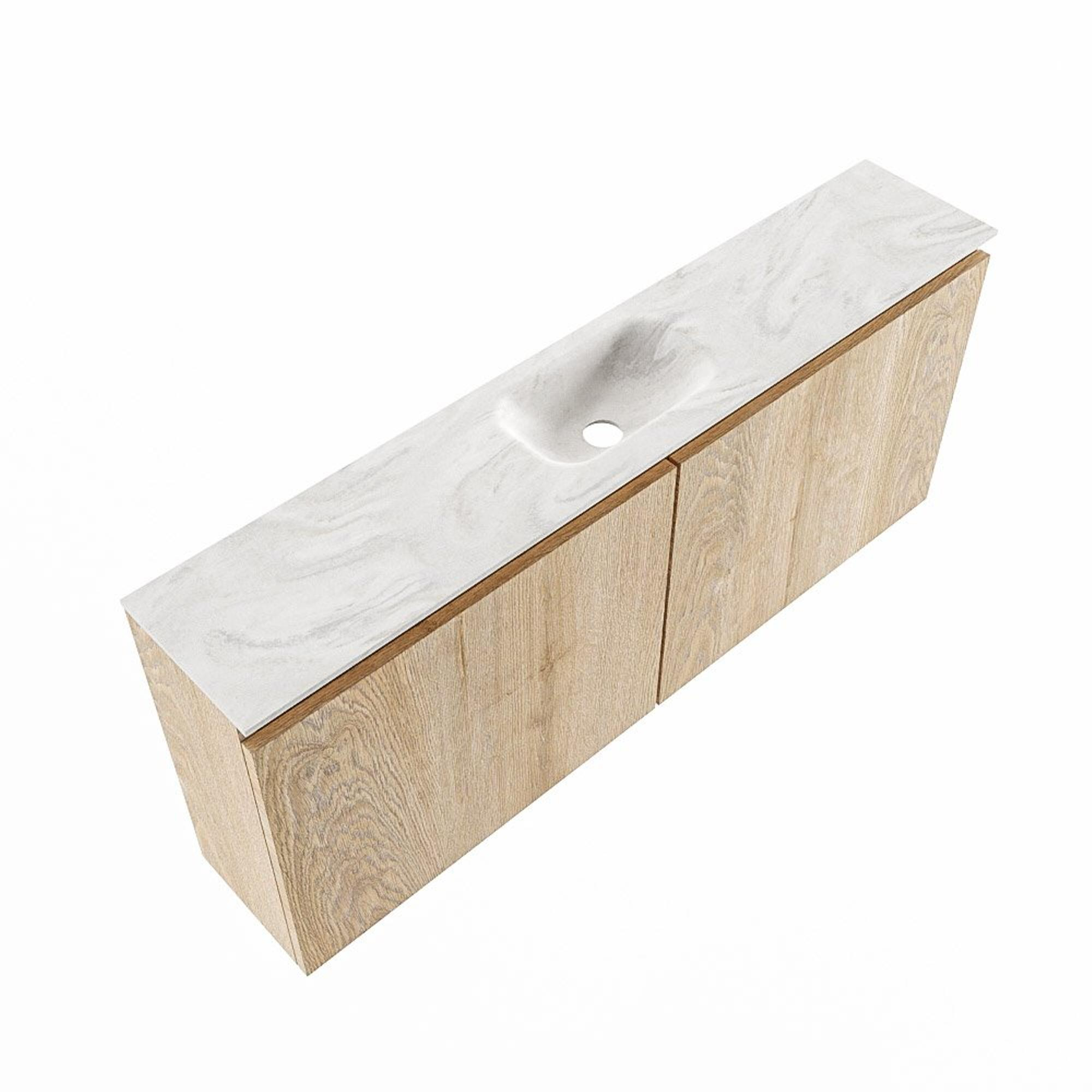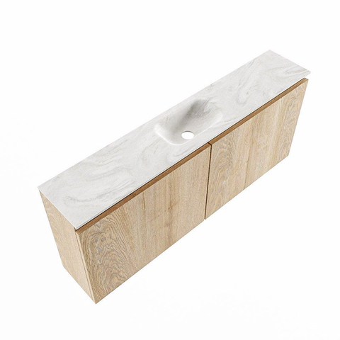 MONDIAZ TURE-DLUX meuble de toilettes 120 cm Washed Oak. Lavabo EDEN Ostra position milieu. Avec 1 trou de robinet.