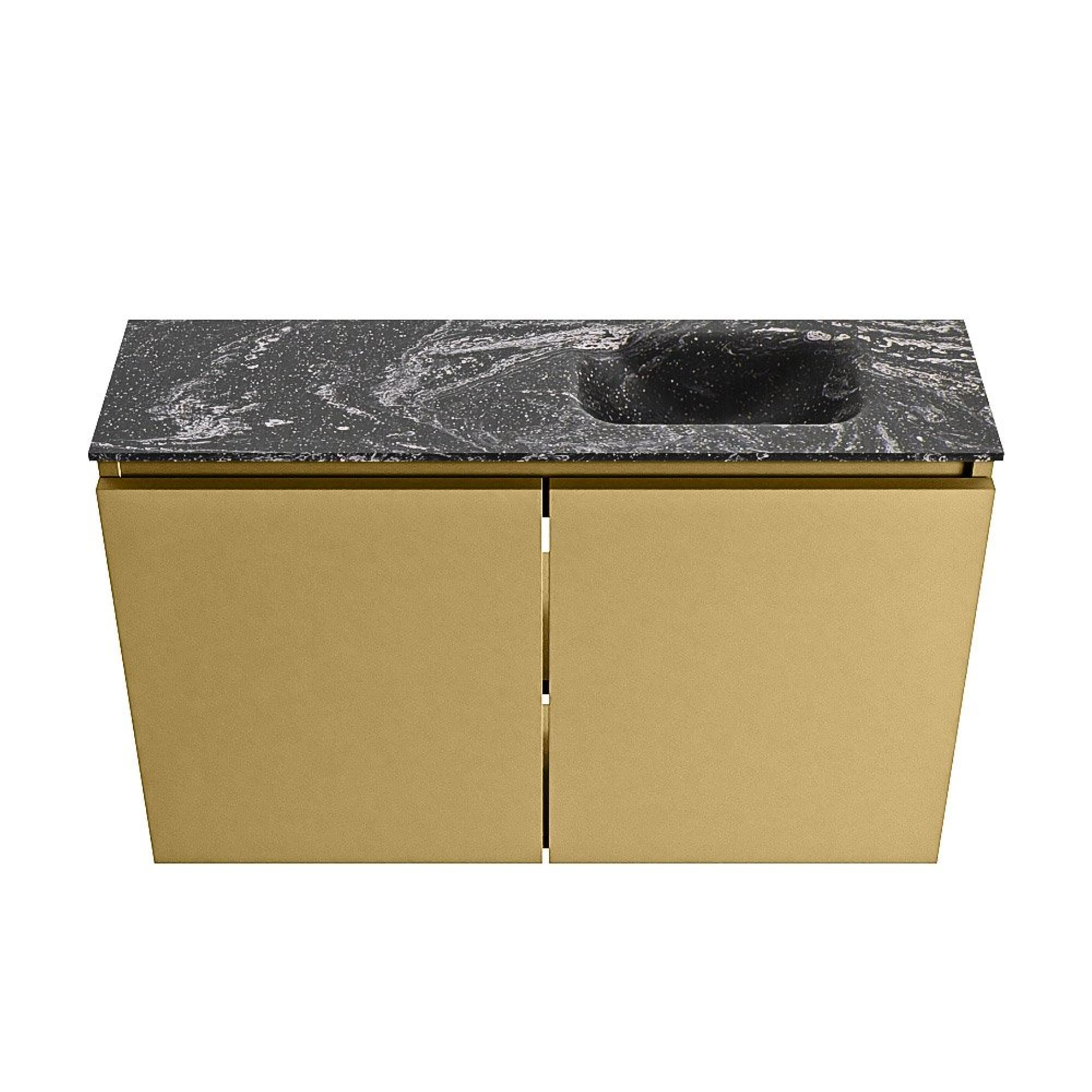 - Meuble moderne coloris doré Oro avec lavabo Eden luxueux en Lava pour une apparence chic et contemporaine.