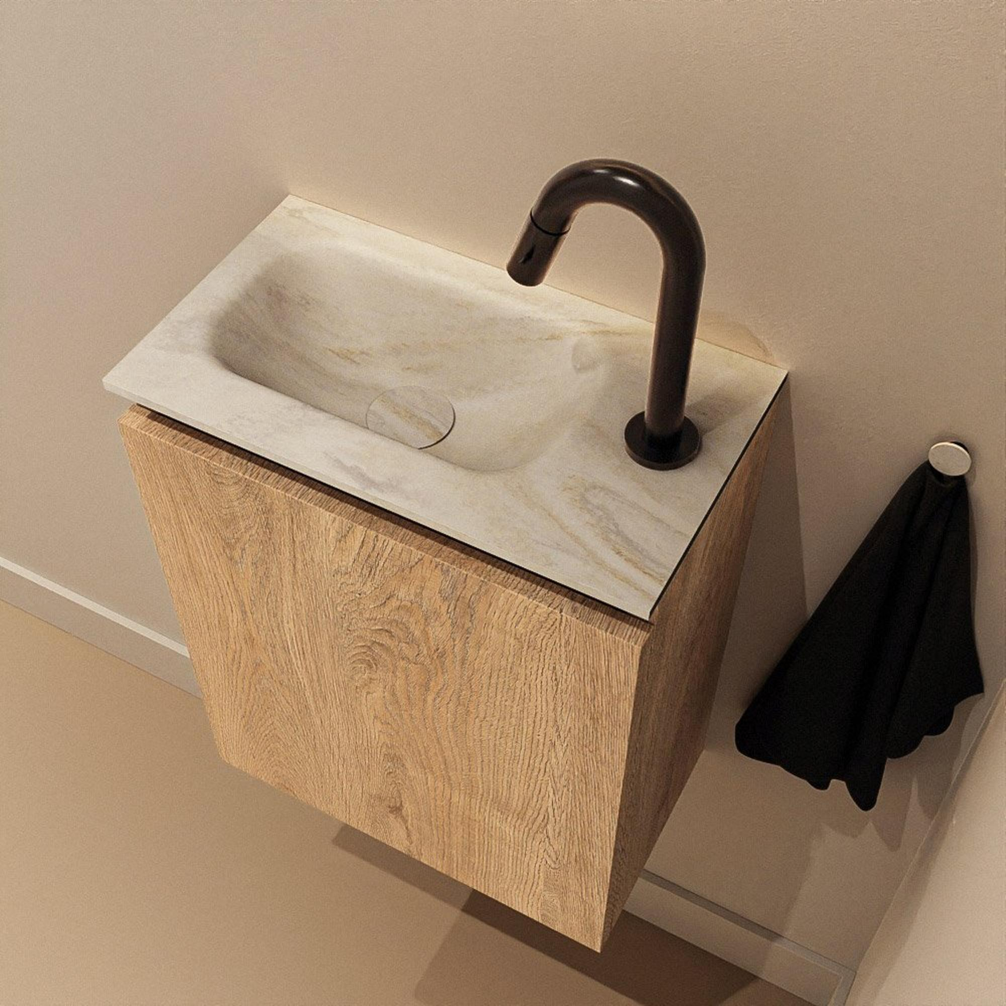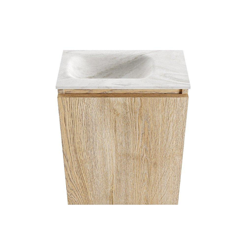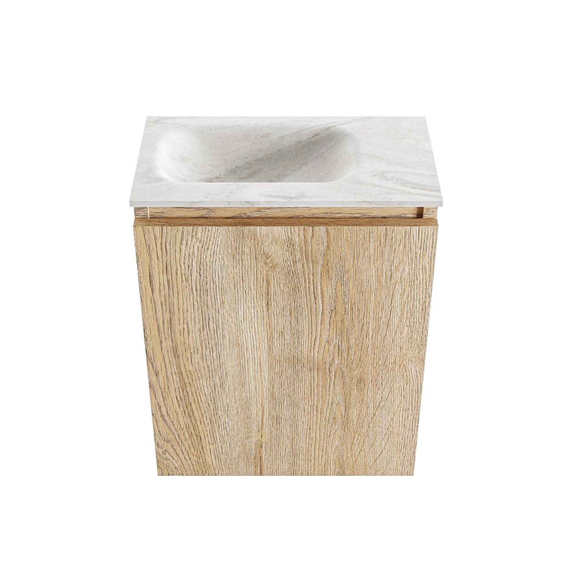 MONDIAZ TURE-DLUX Meuble de toilettes 40 cm Washed Oak. Lavabo EDEN Ostra position gauche. Avec 1 trou de robinet.