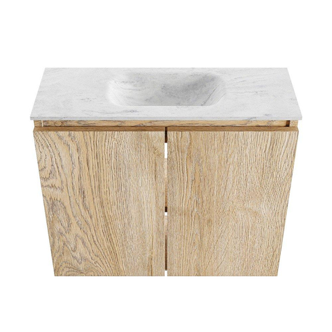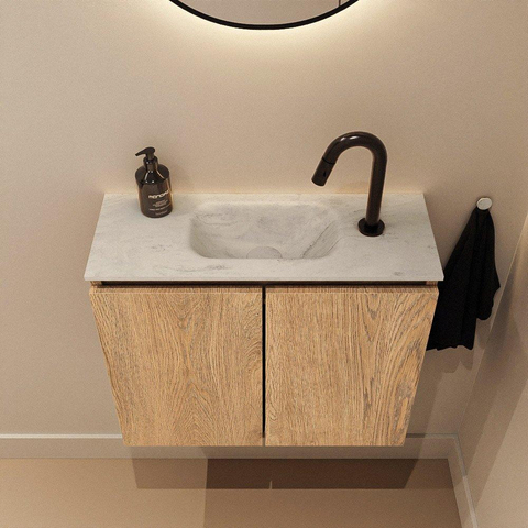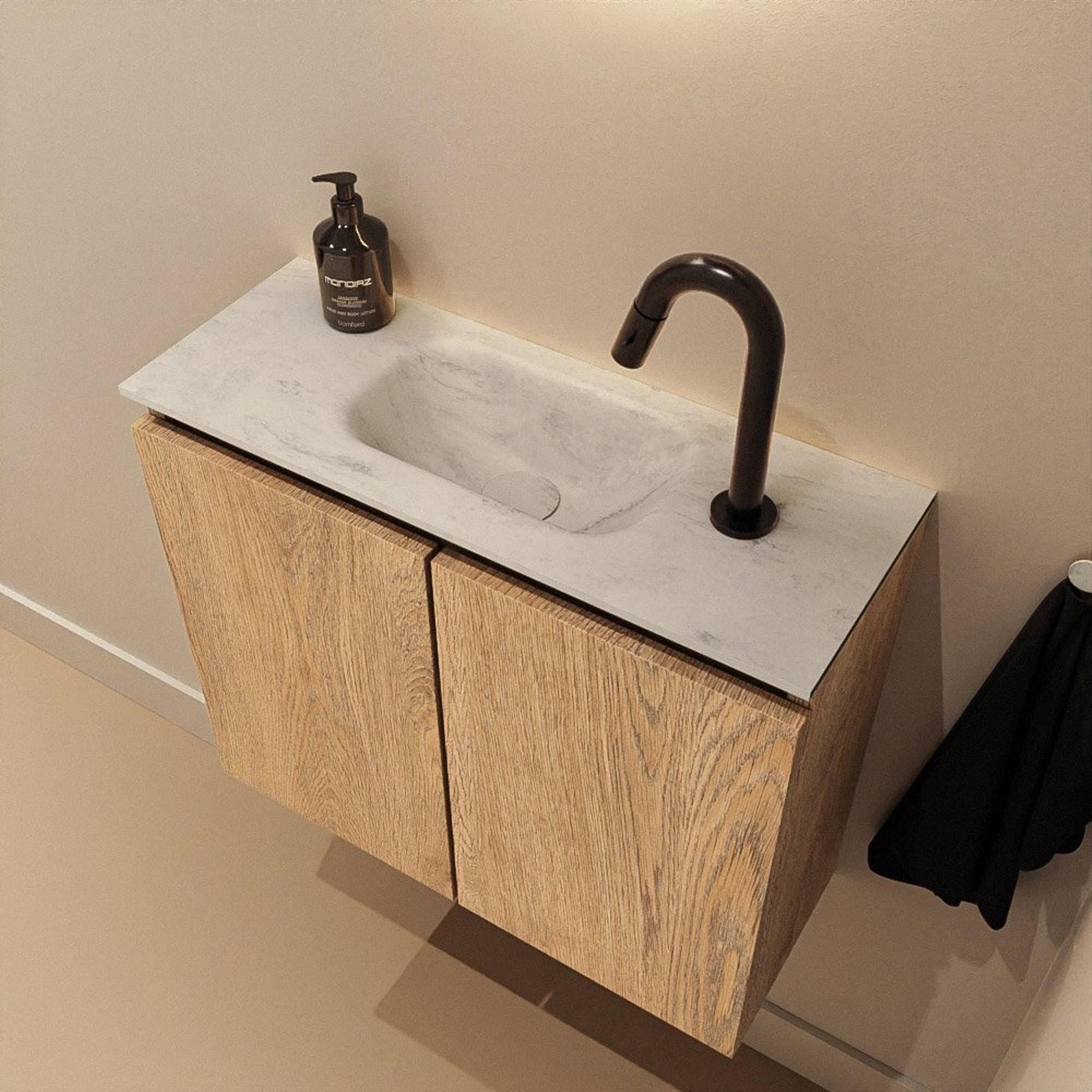 MONDIAZ TURE-DLUX Meuble pour toilettes 60 cm Washed Oak. EDEN lavabo Opalo position milieu. Avec 1 trou de robinet.