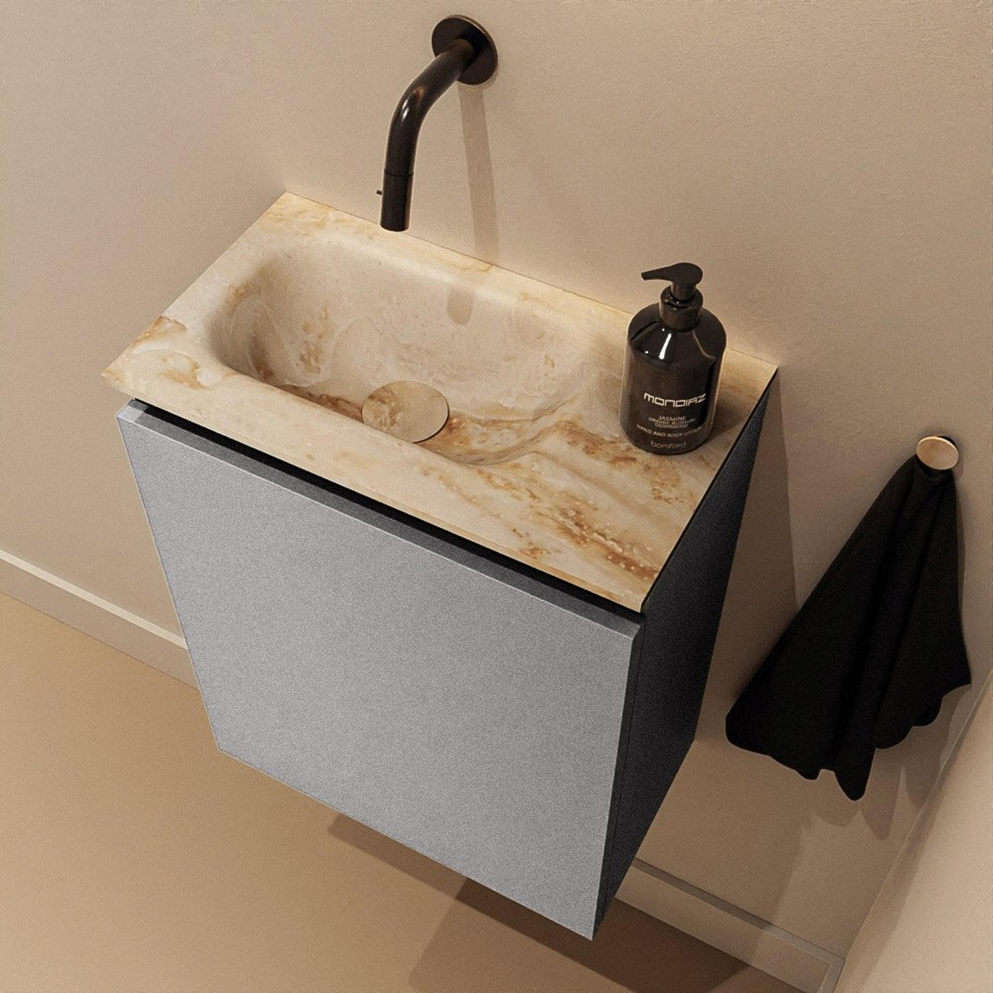 MONDIAZ TURE-DLUX meuble de toilette 40 cm Plata. EDEN lavabo Frappe position gauche. Sans trou de robinet.