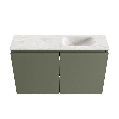 MONDIAZ TURE-DLUX Meuble de toilette 80cm Army. EDEN lavabo Ostra position droite. Avec 1 trou de robinet.