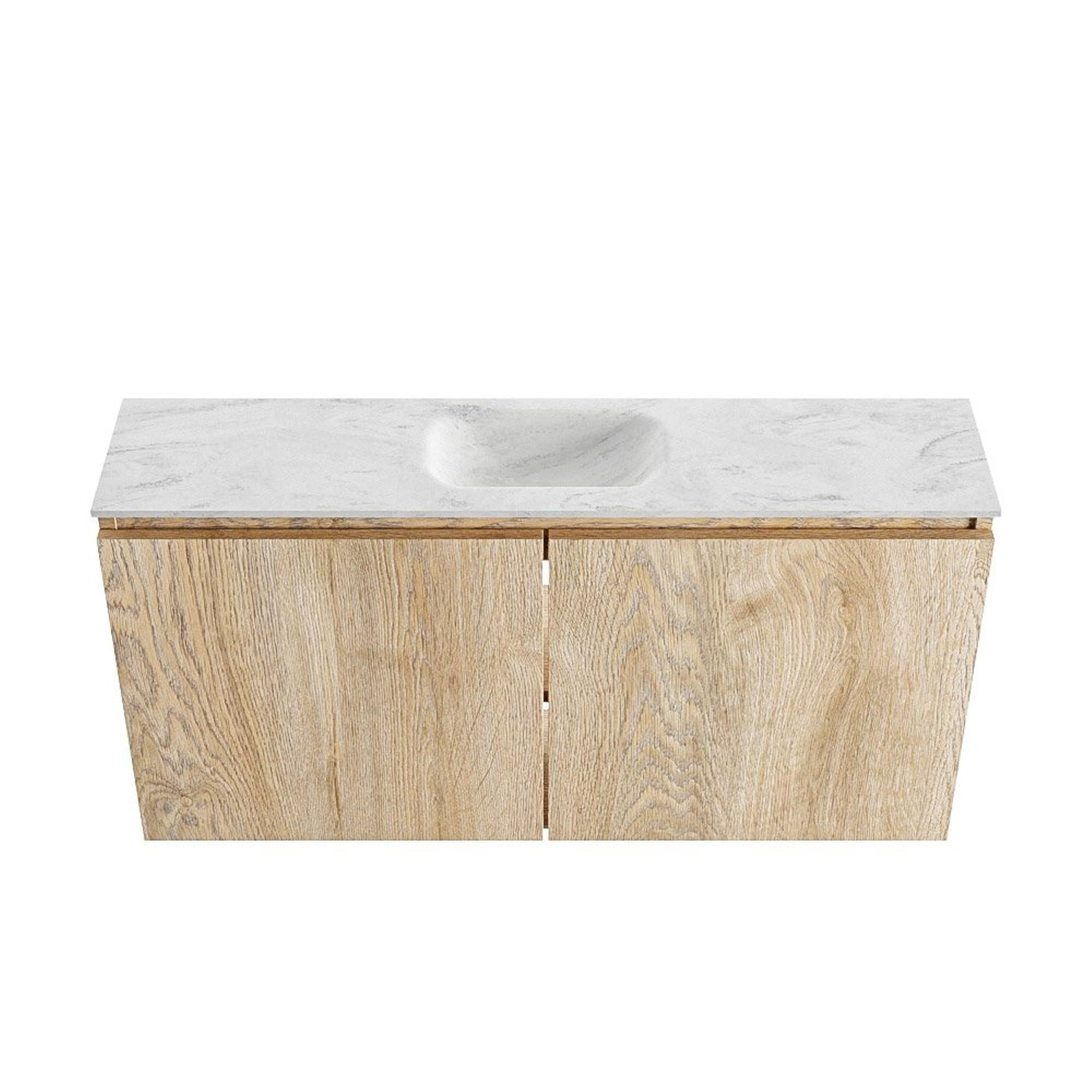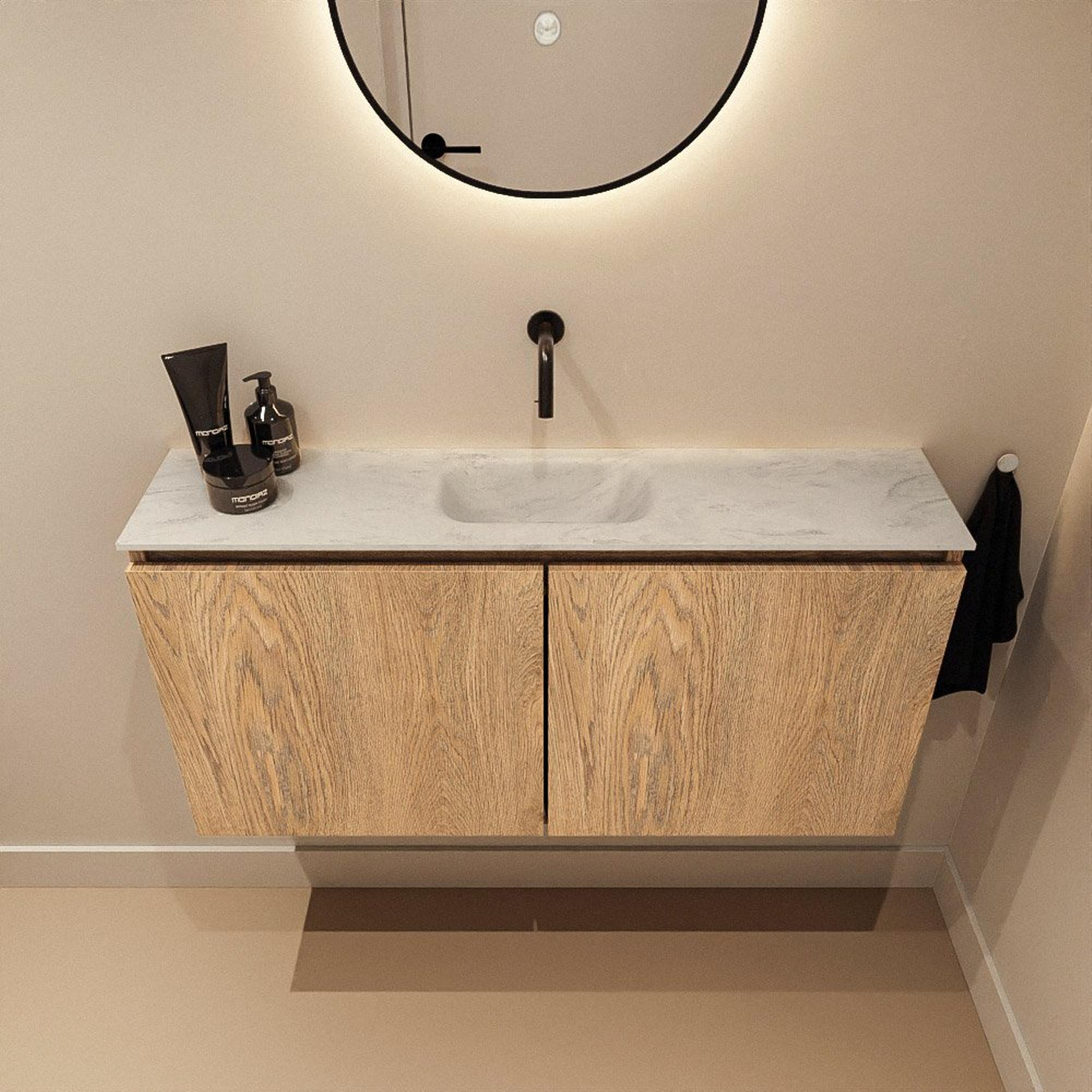 MONDIAZ TURE-DLUX 100cm meuble WC Washed Oak. EDEN vasque Opalo position milieu. Sans trou de robinet.