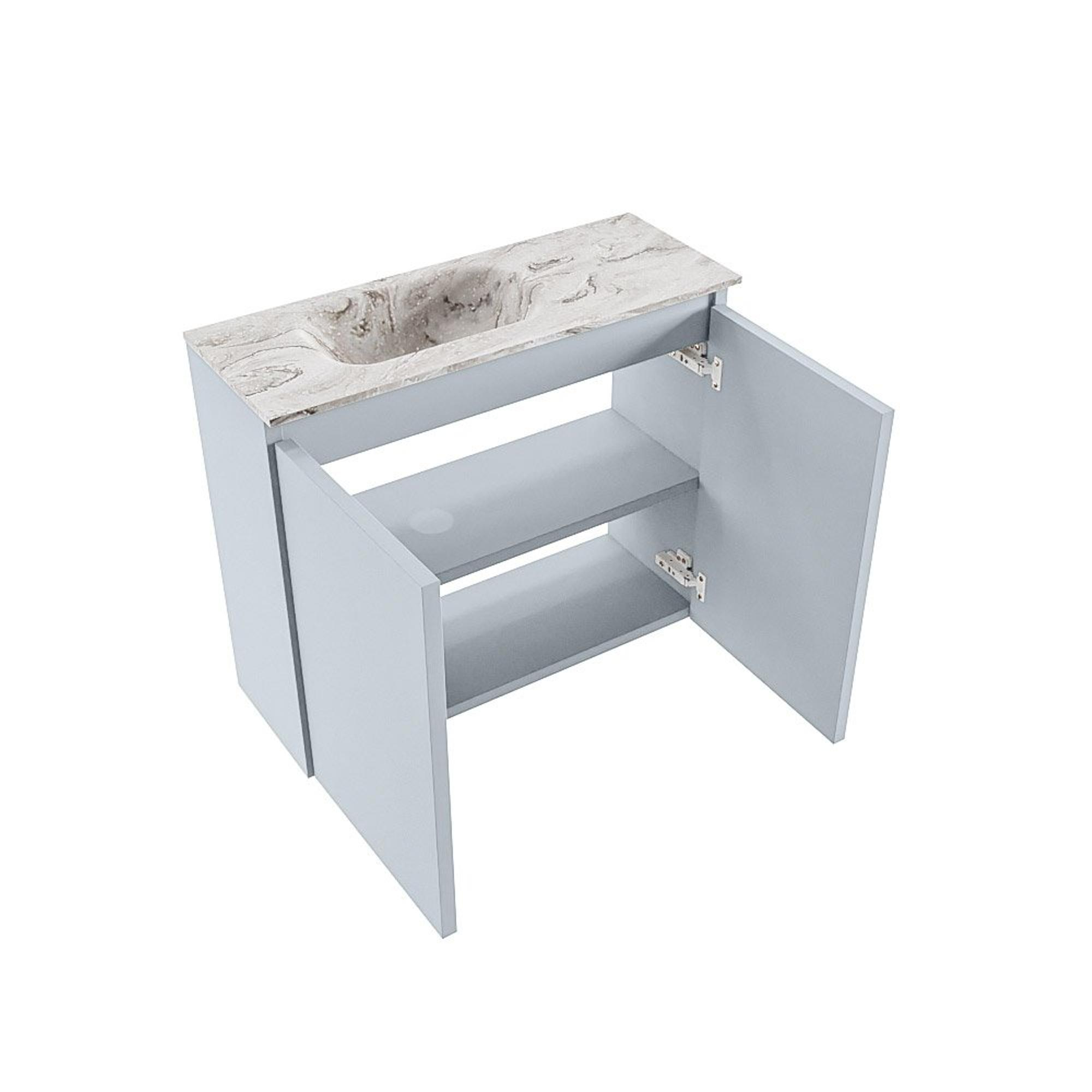 Le meuble est fabriqué en MDF, un matériau stable qui convient parfaitement à une utilisation dans la salle de bains et les toilettes. Le plan en solid surface avec lavabo Eden intégré aspect marbre est lisse, uniforme et hygiénique, ce qui fait que la saleté adhère moins vite et que vous nettoyez facilement la surface avec un produit de nettoyage doux. Comme le lavabo est conçu sans trou de robinet, vous pouvez choisir vous-même un mitigeur à poser assorti, mural ou sur le plan, ce qui offre une liberté supplémentaire dans la conception. Grâce à une propriété antibactérienne et à une fermeture softclose sur les portes, le meuble reste non seulement beau, mais il est également confortable et bien pensé au quotidien.