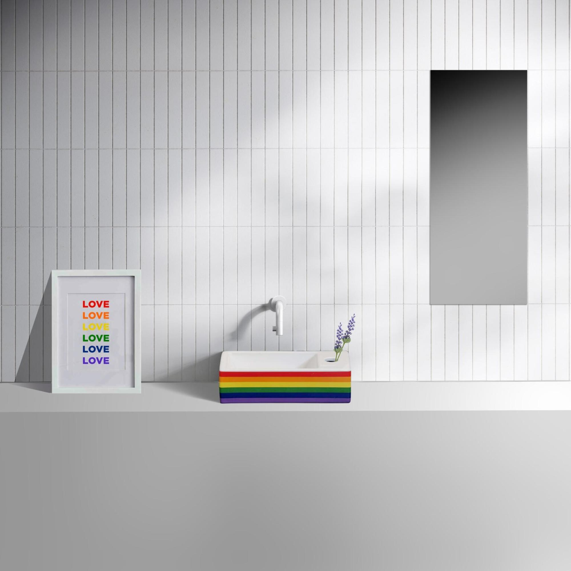 Clou Flush 3 lave-mains - 36x18x9cm - céramique - 1 trou de robinet à droite - brillant arc-en-ciel (multi)