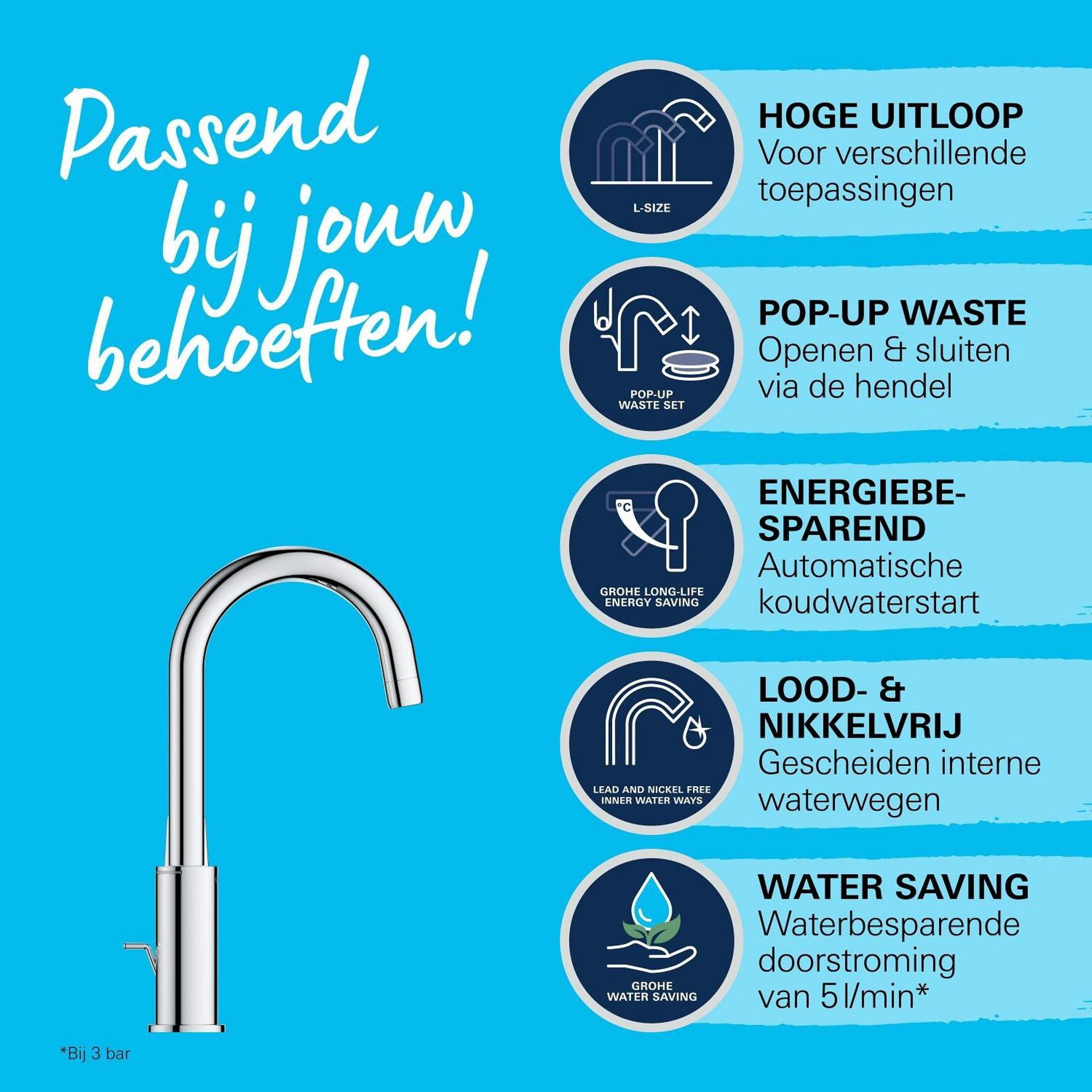 Grohe Swift QuickFix Mitigeur lavabo - L size - avec tirette - chrome