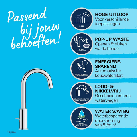 Confort, technologie respectueuse de l'environnement et installation rapide – le ensemble de robinet GROHE Swift avec bec haut pivotant est un design intelligent et élégant à un excellent prix