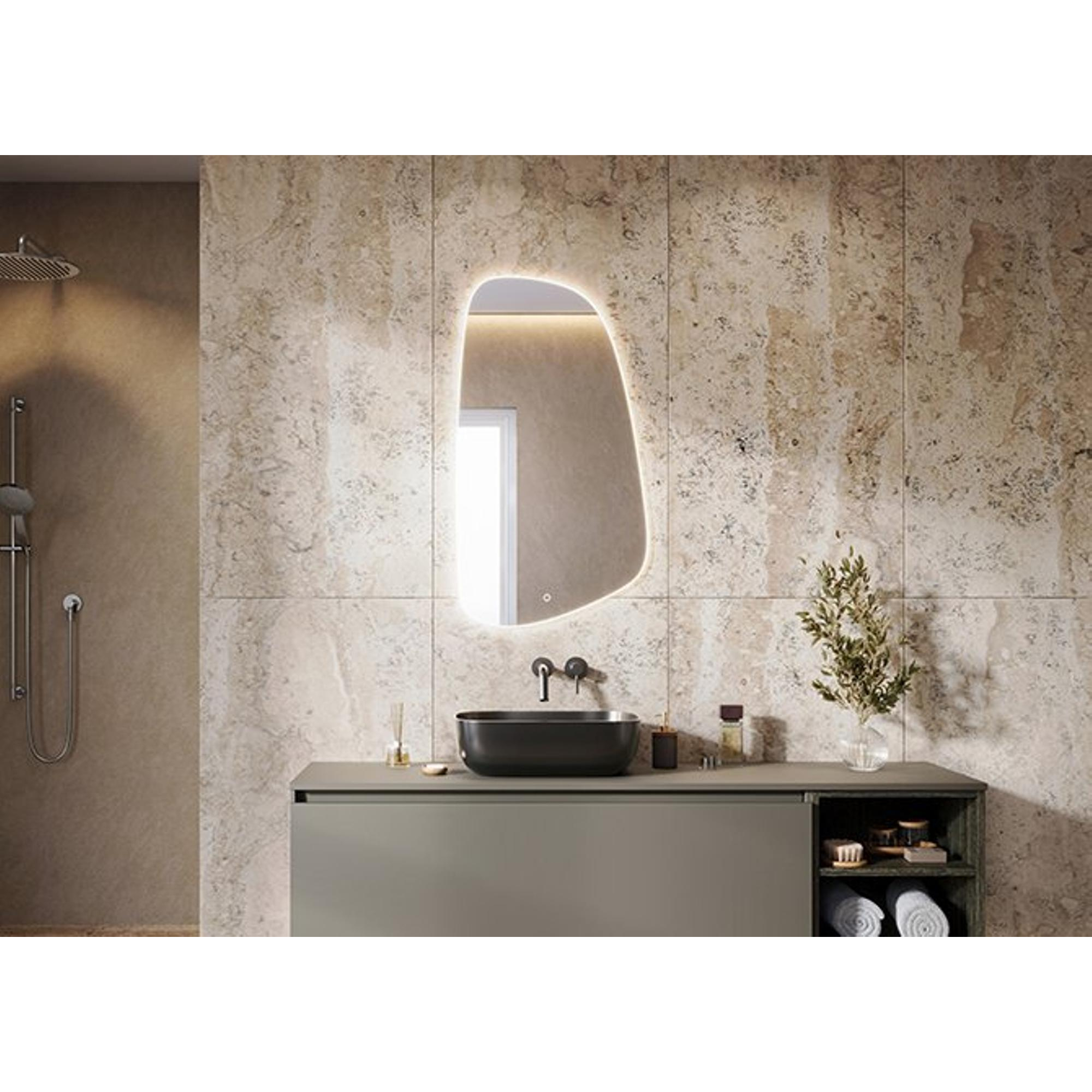 HR Meubles de salle de bain Sasso 2.0 Miroir - 50x90cm - forme organique - éclairage indirect LED sans point - capteur tactile - intensité variable - température de couleur réglable - chauffe-miroir