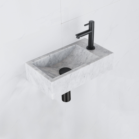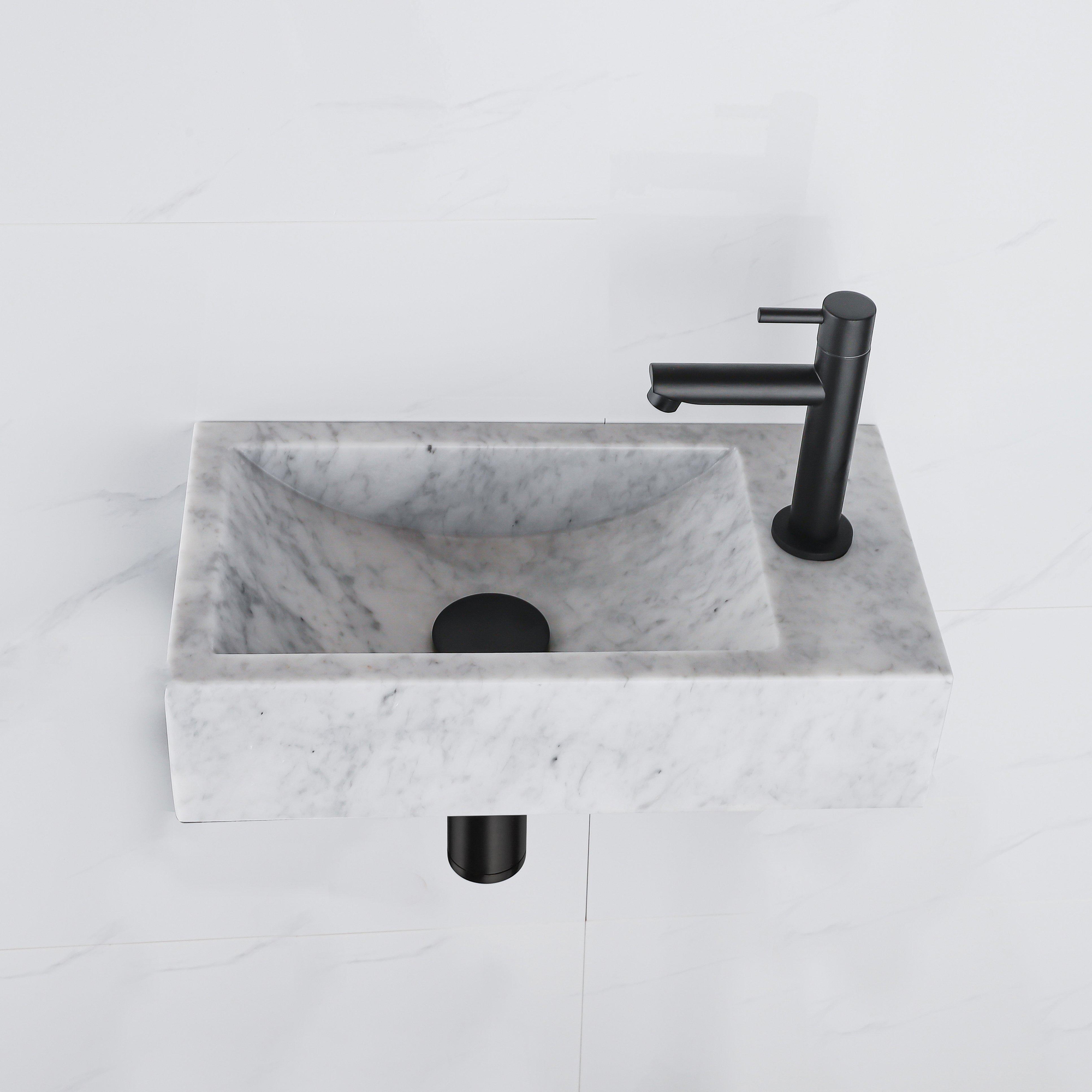 Saniclass Fuente ensemble de lavabo - 40x22 - 1 trou de robinet - droite - marbre - robinet de lavabo noir mat - blanc